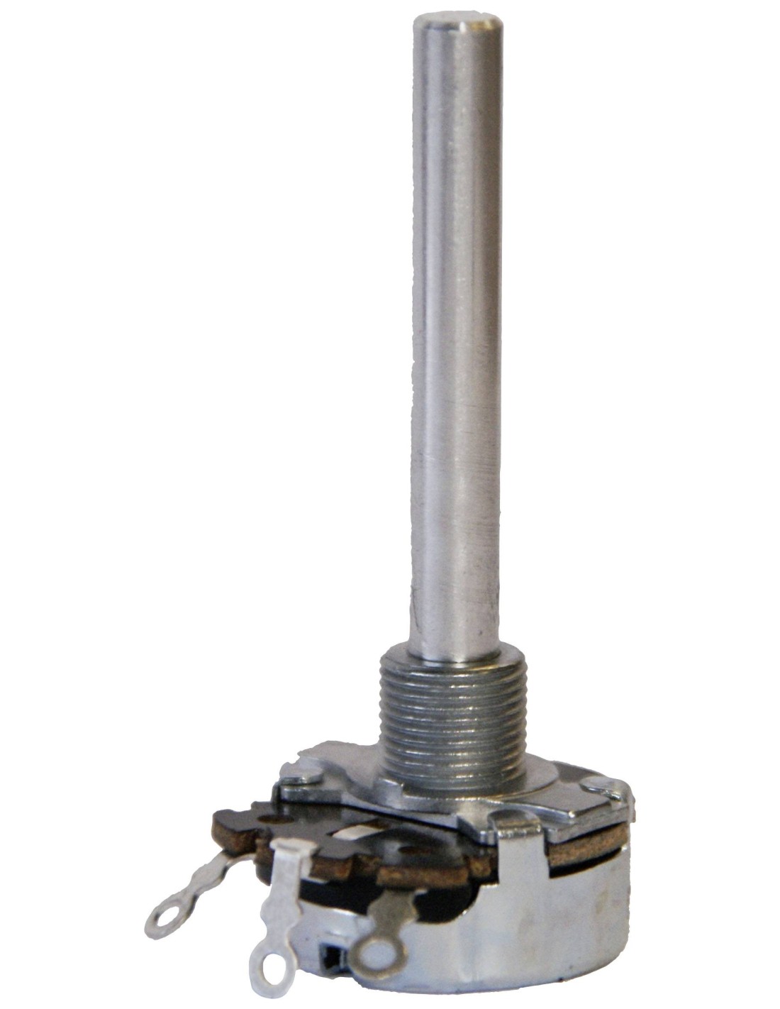 Potenciómetro mando metálico bobinado Potencia nominal: 5W a 25°C, 4W a 55°C Tolerancia normal: ± 10% Dimensiones del eje de aluminio: 6 mm. Variación de la resistencia, unicamente lineal.