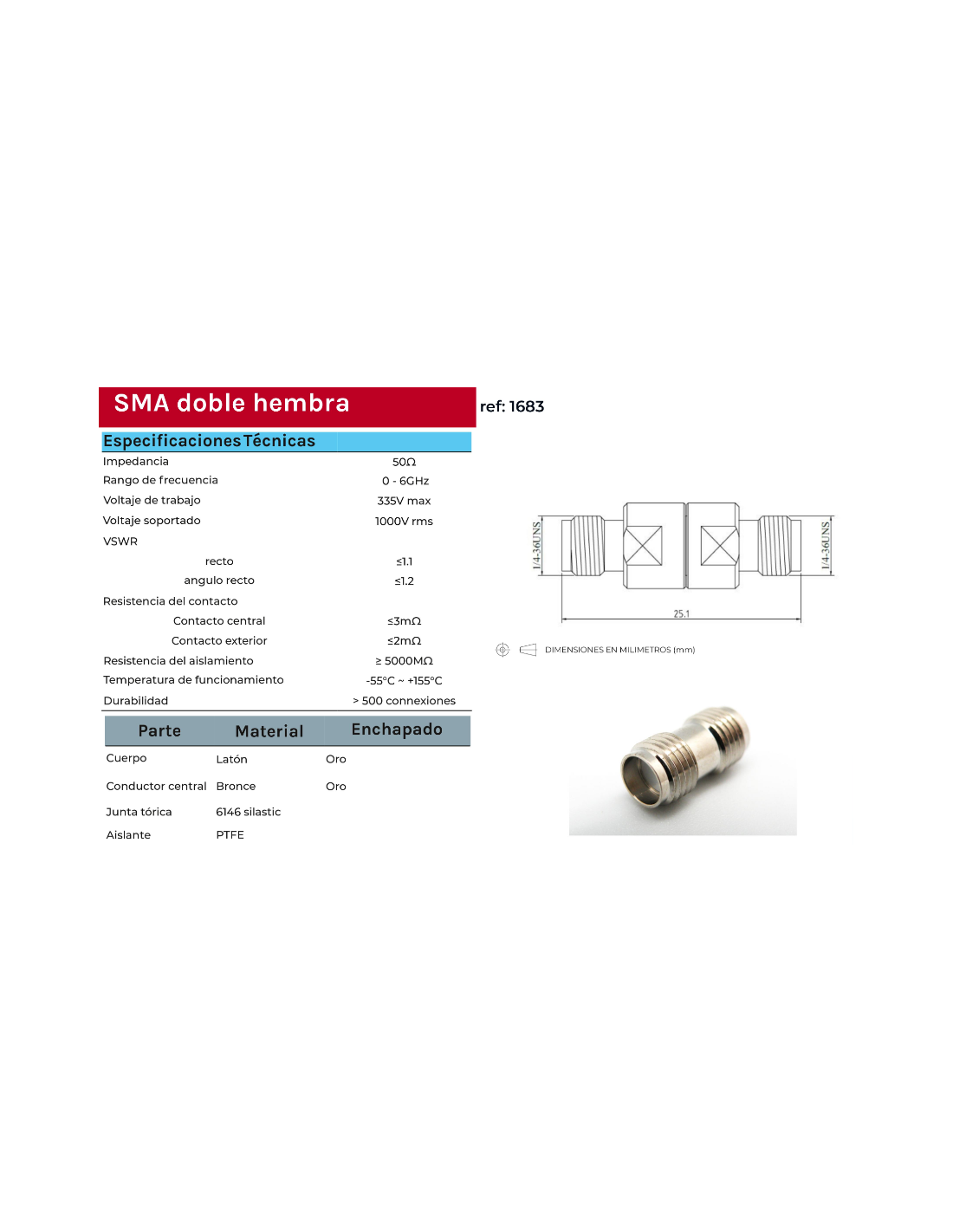 14 días de devoluciónAdaptador SMA hembra/hembra