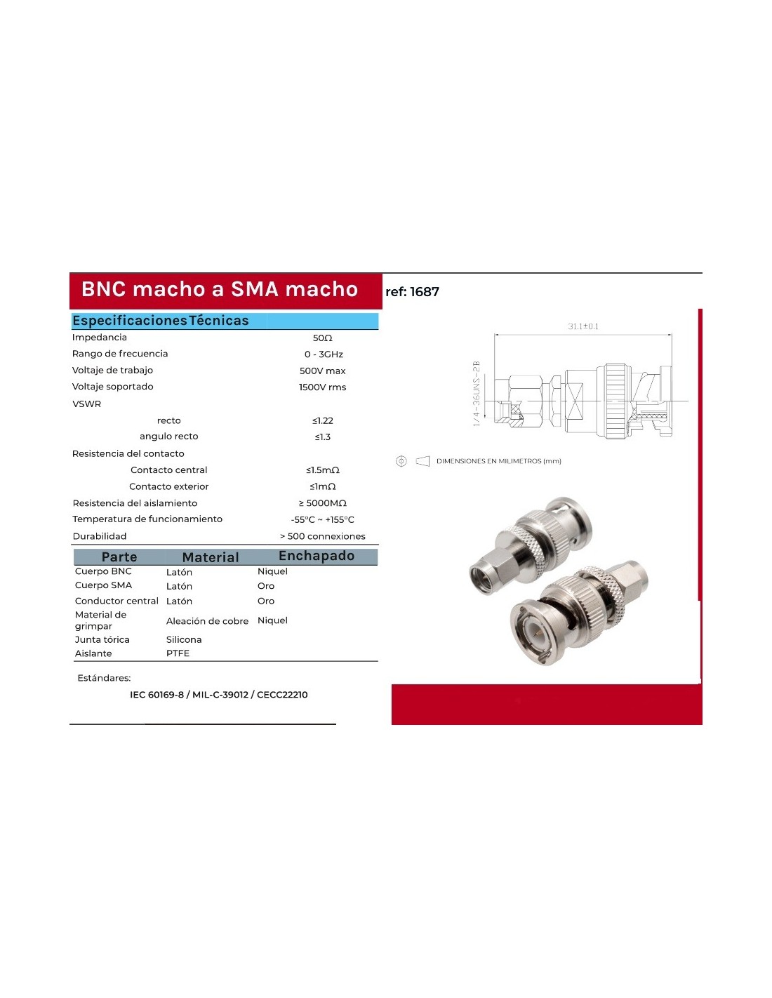14 días de devoluciónADAPTADOR SMA-MACHO / BNC-MACHO