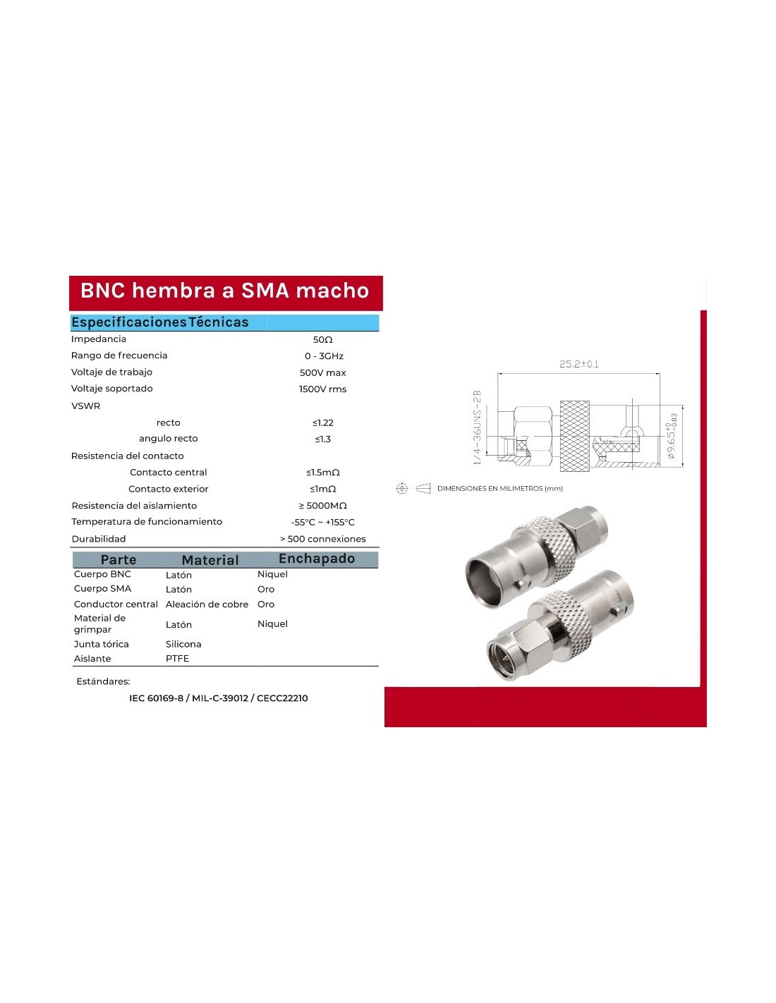 14 días de devoluciónADAPTADOR SMA-MACHO / BNC-HEMBRA