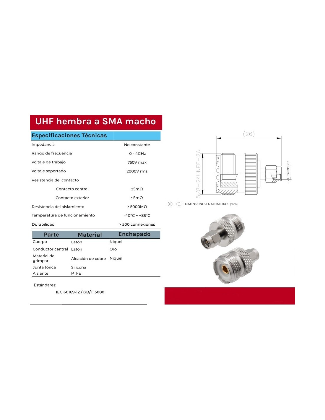 14 días de devoluciónADAPTADOR SMA-MACHO / UHF-HEMBRA