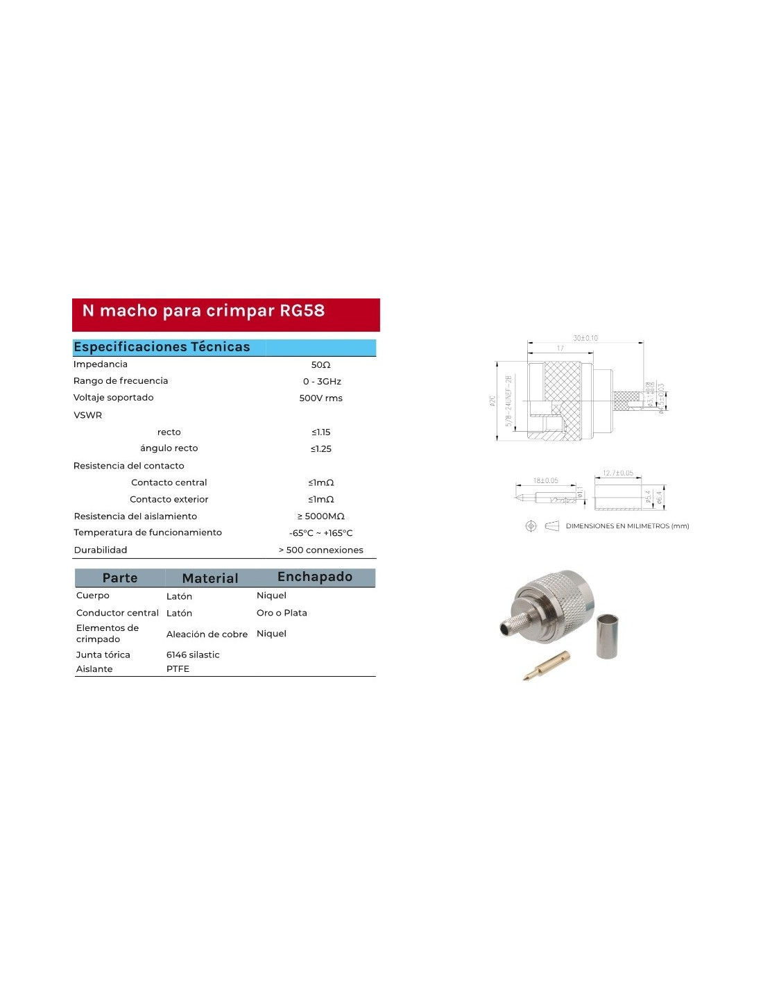14 días de devoluciónCONECTOR MACHO N