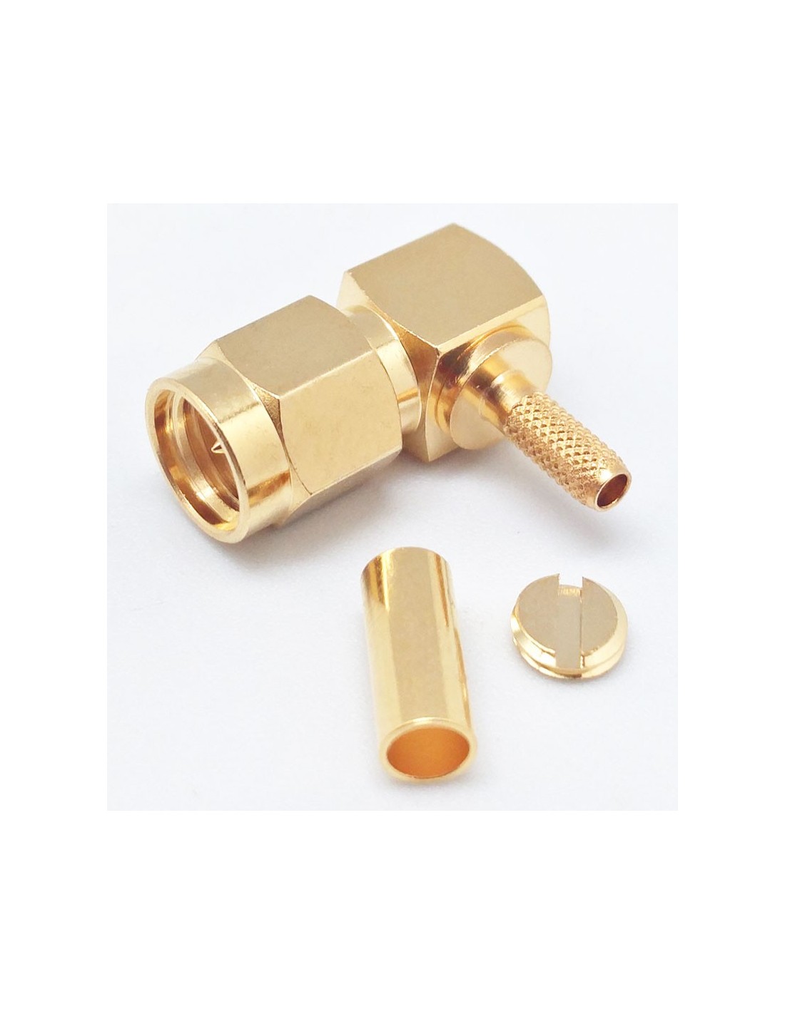 Conector SMA macho acodado crimpar