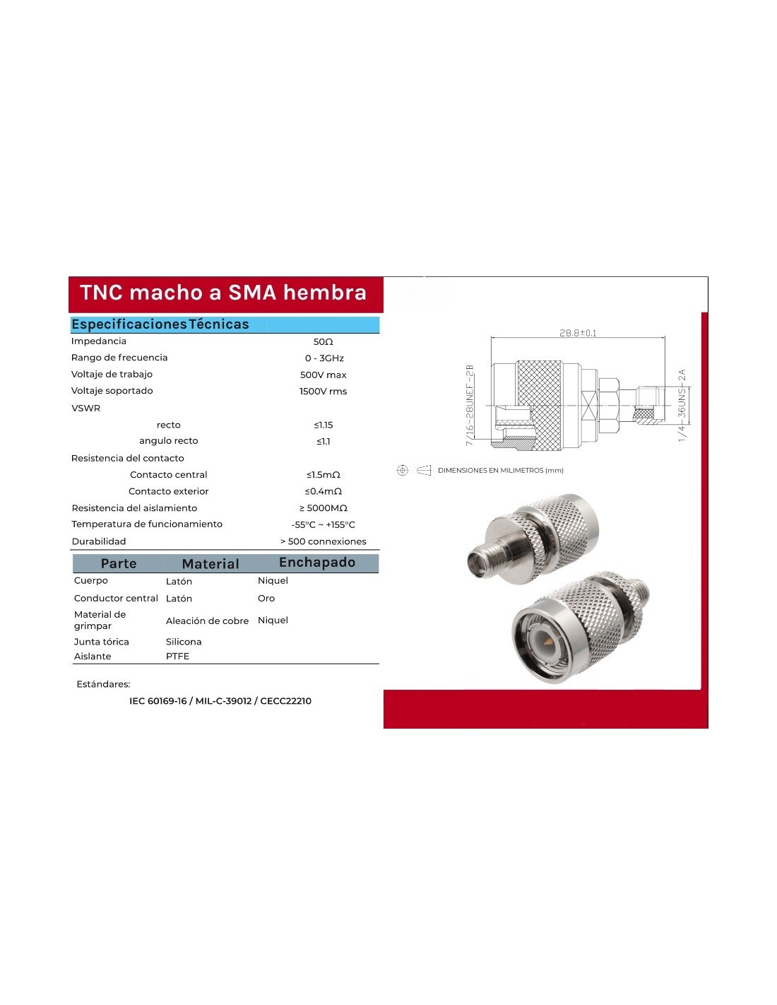 14 días de devoluciónADAPTADOR SMA-HEMBRAÂ / TNC-MACHO