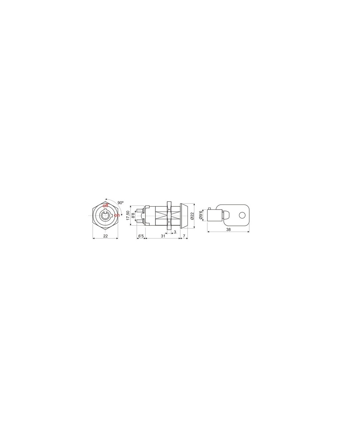 INTERRUPTOR LLAVE TUBULAR 2POS/1C