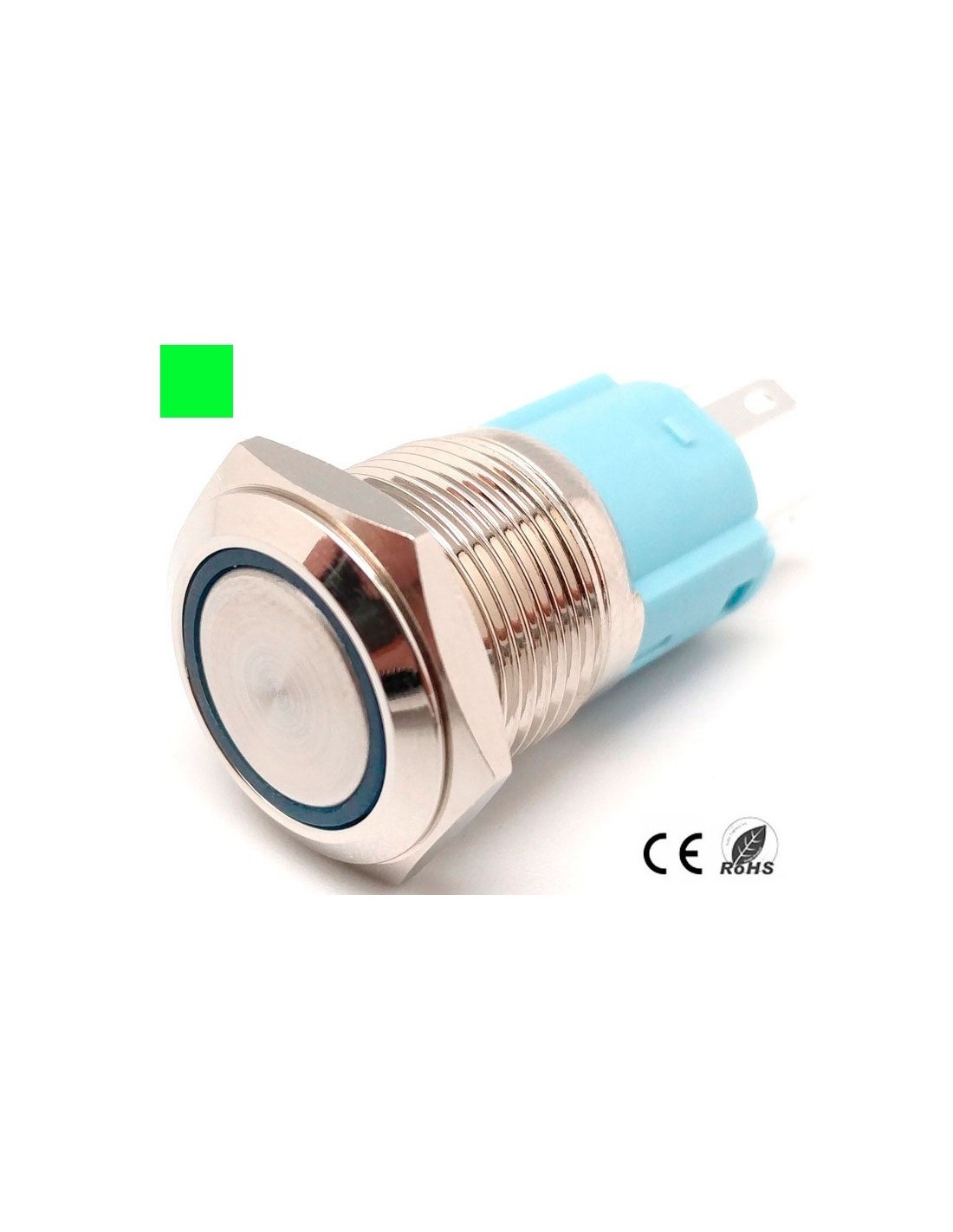 OFF-(ON) SPDT Diámetro: 16mm Intensidad Máx: 3A Voltaje Máx: 250V Voltaje LED: 12V 5 Terminales soldar
