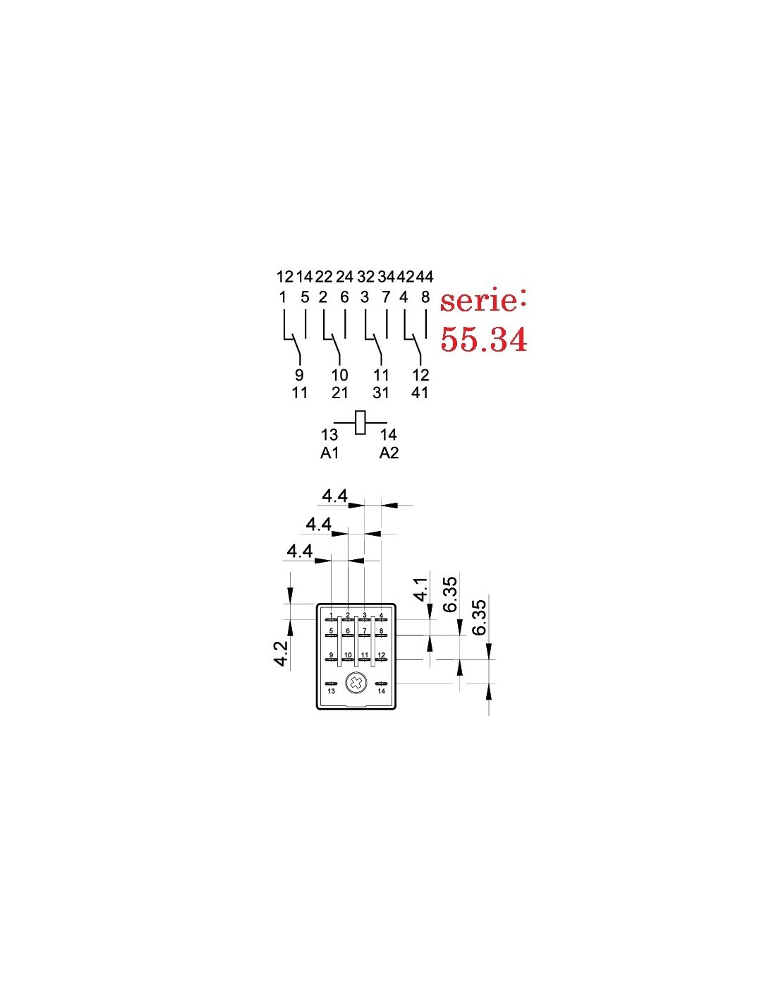 ZOCALO RELE 4 C.C. CARRIL DIN PARA LA SERIE 55.34 & 55.32
