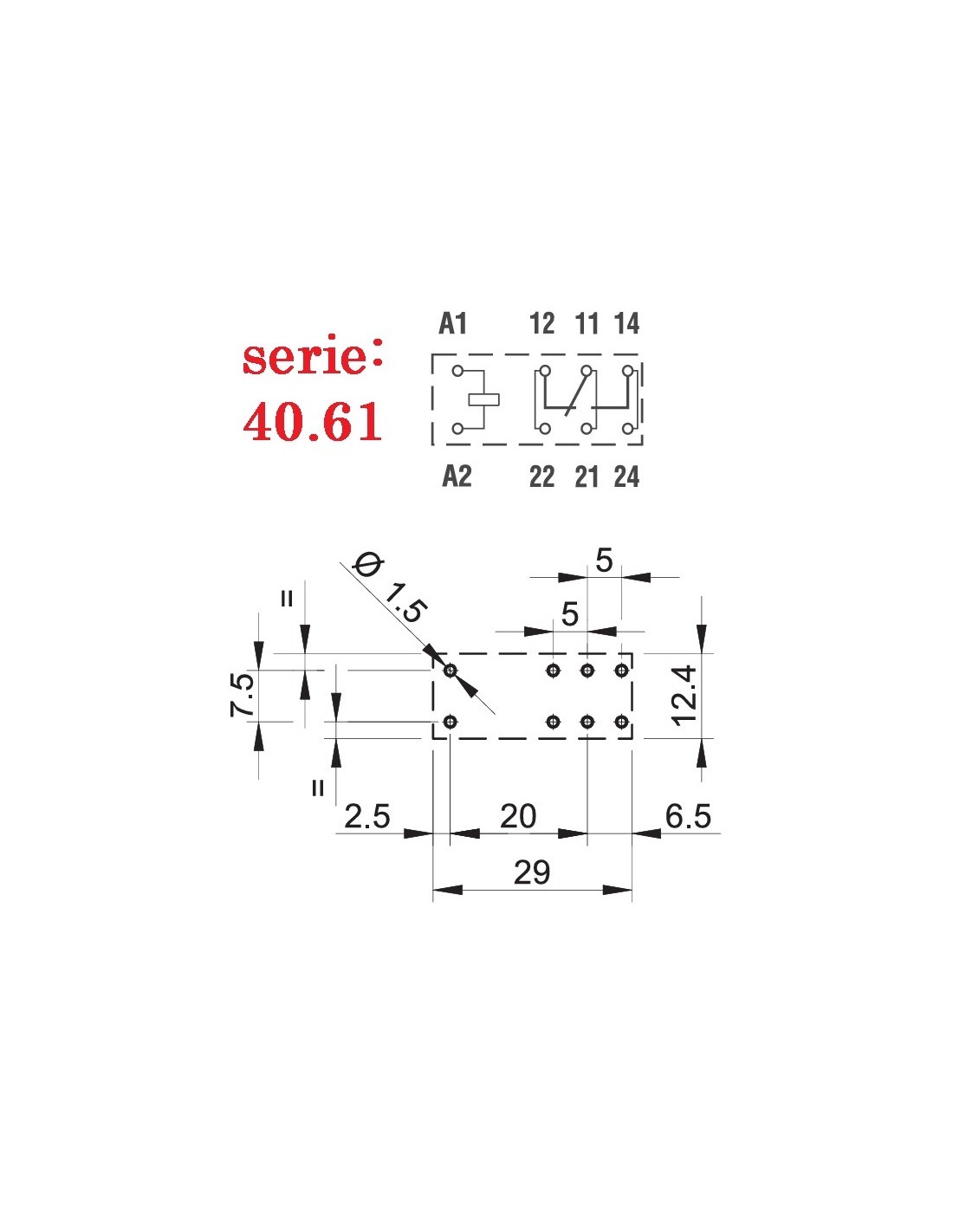 El zocalo para carril DIN de este relé, es el modelo 95.65 o SFB21C00T o 95.75 y para PCB es el modelo: 95.15