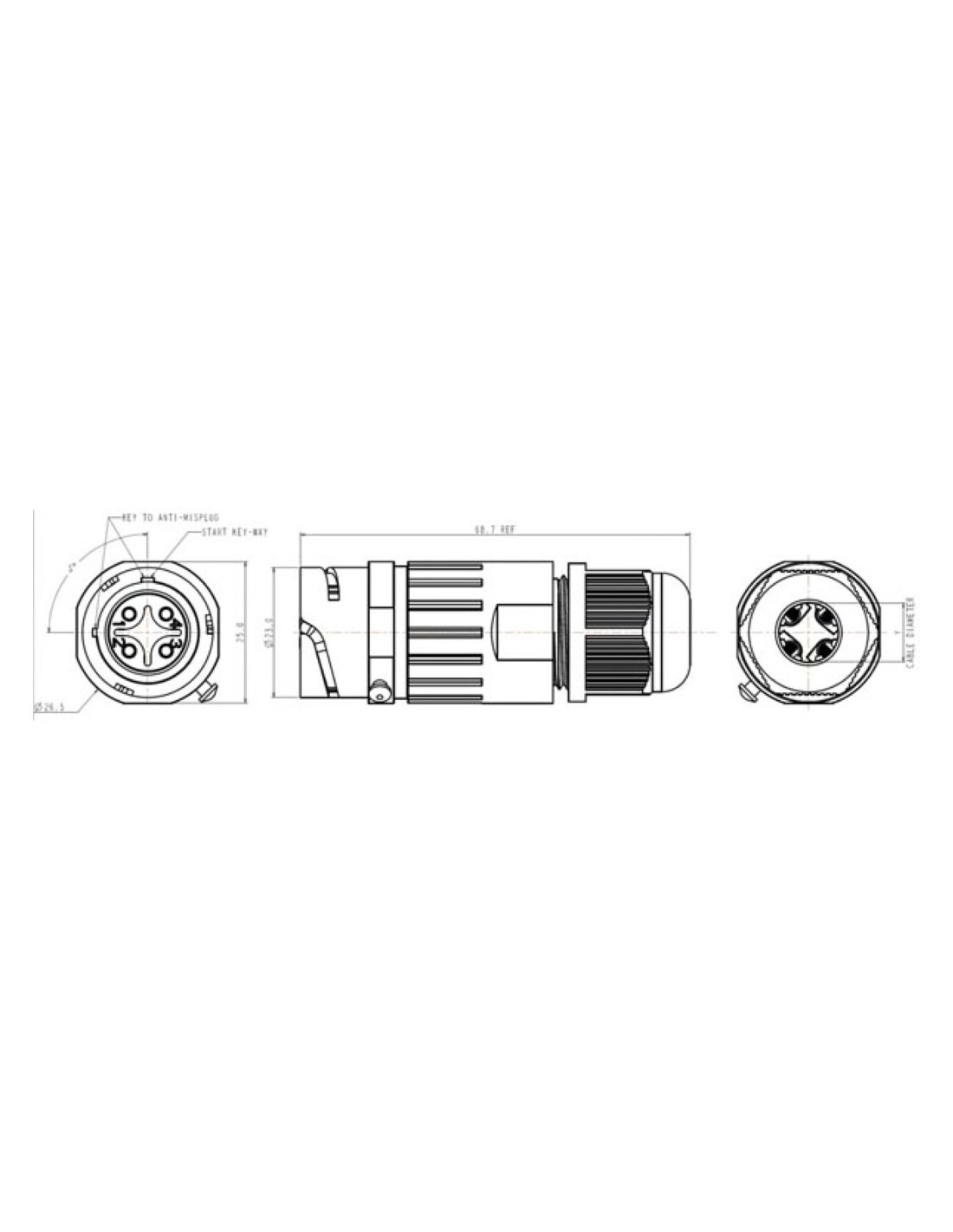 - grado de protección IP: IP68 (después de la conexión)