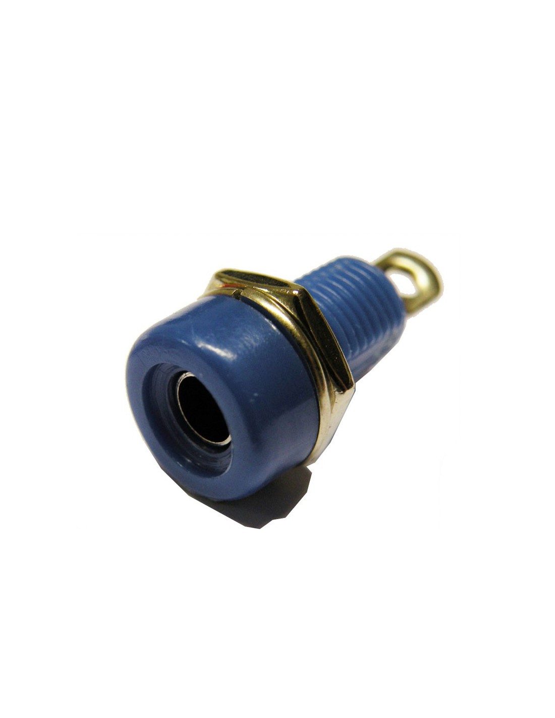 BANANA HEMBRILA 4MM CHASIS AZUL CON LENGUETA PARA SOLDAR