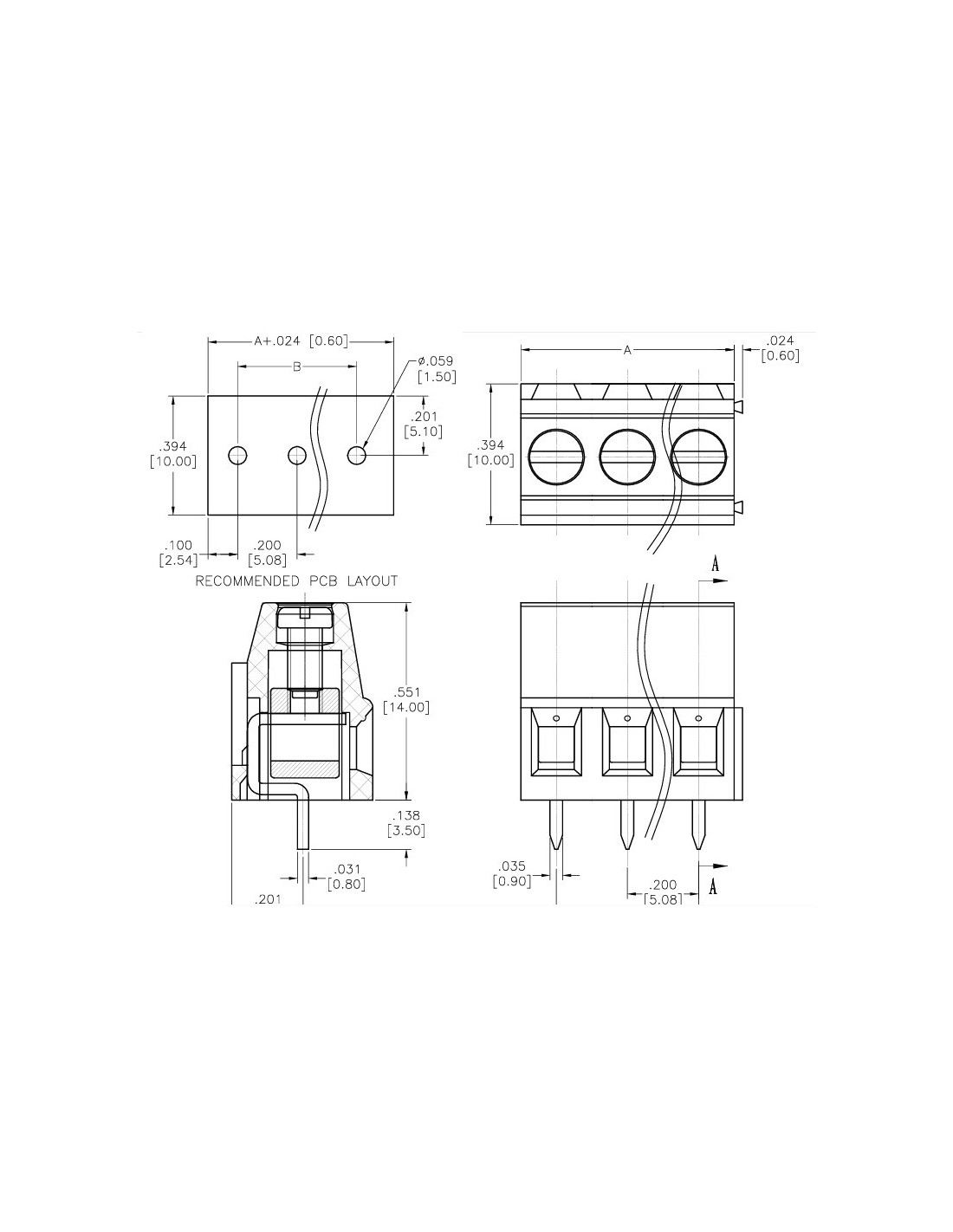 REGLETA 3 CTS. 5.08mm 17A 2.5mm² H:14mm PCB APILABLE