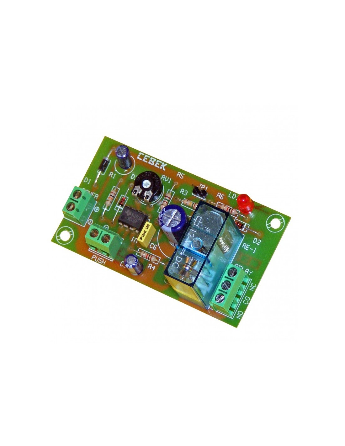 El circuito se mantendrá en reposo hasta que se pulsen o cierren los contactos de la entrada de activación, en este instante se conectará el relé de salida.