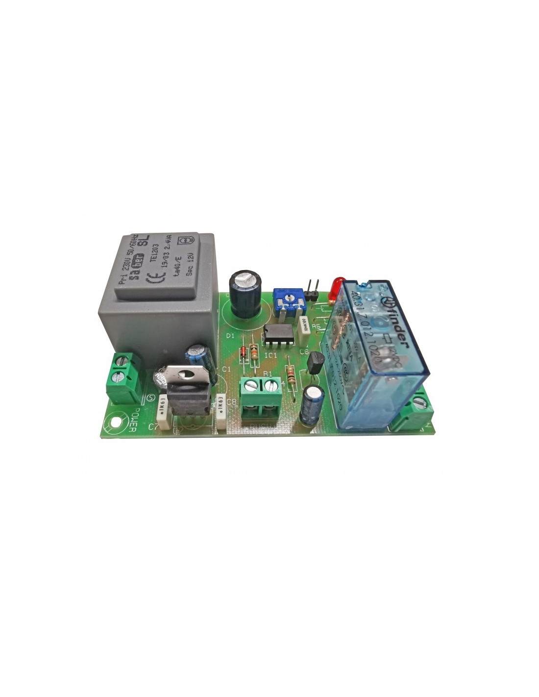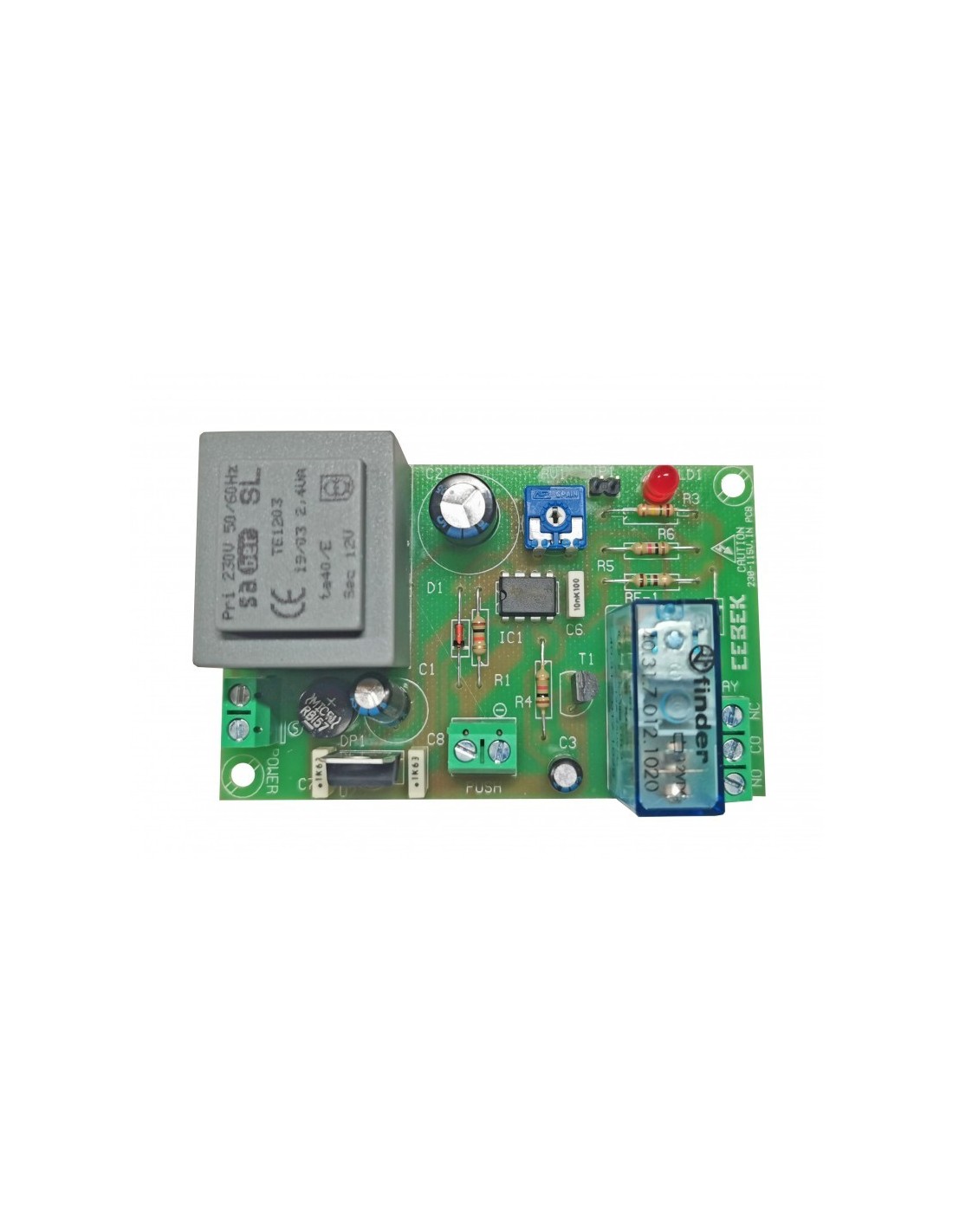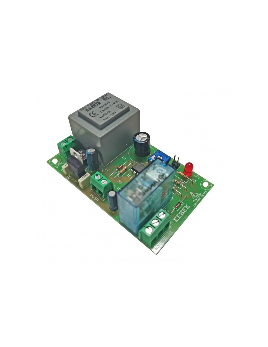El circuito se mantendrá en reposo hasta que se pulsen o cierren los contactos de la entrada de activación, en este instante se conectará el relé de salida.