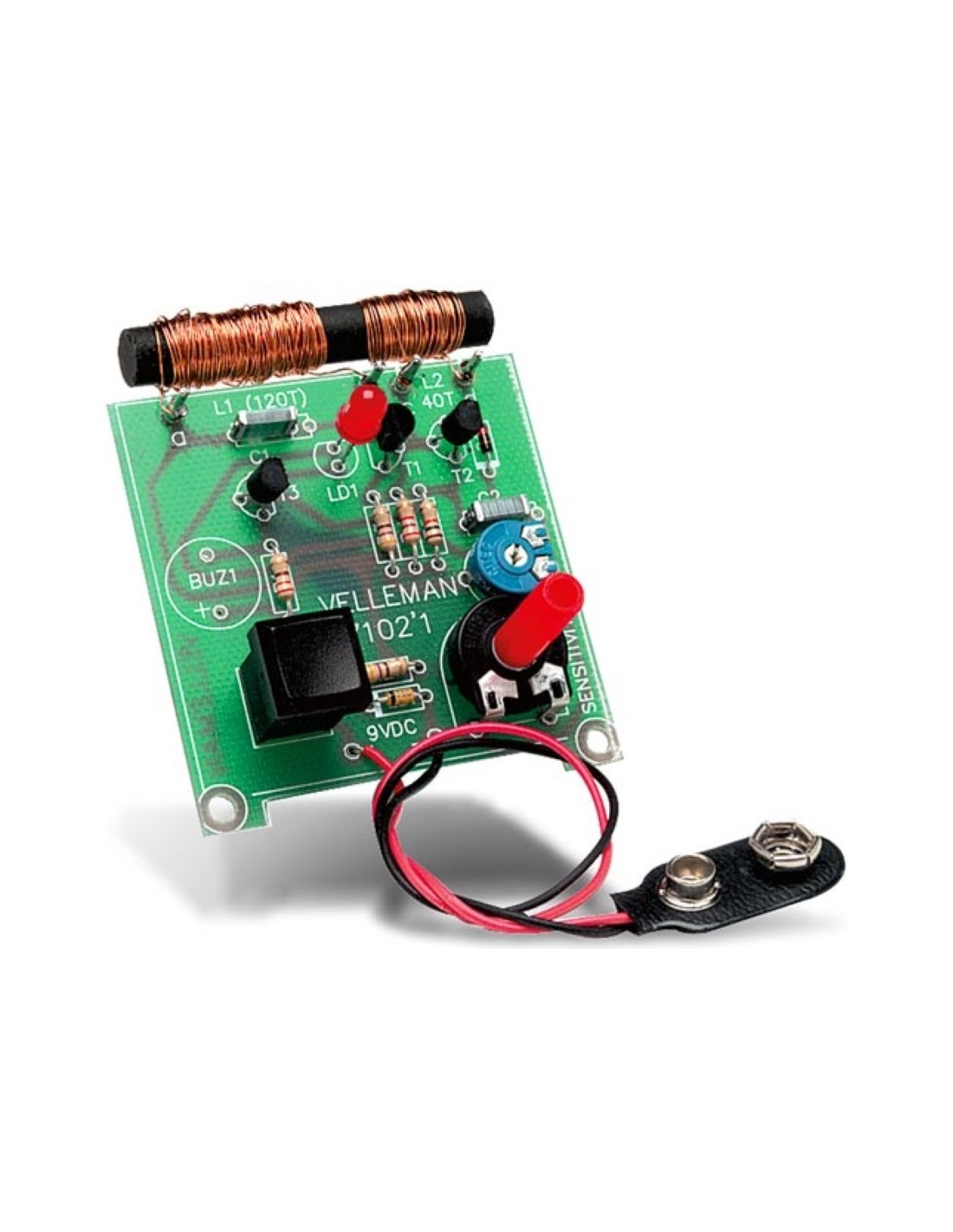 Si experimenta dificultades con la calibración de la unidad (es decir, si el LED no se apaga cuando no hay ningún metal presente), reemplace C1 con un capacitor cerámico de 1,2 nF (122). Este comportamiento se debe a la dispersión de los valores de los componentes y las diferencias creadas al enrollar las bobinas.