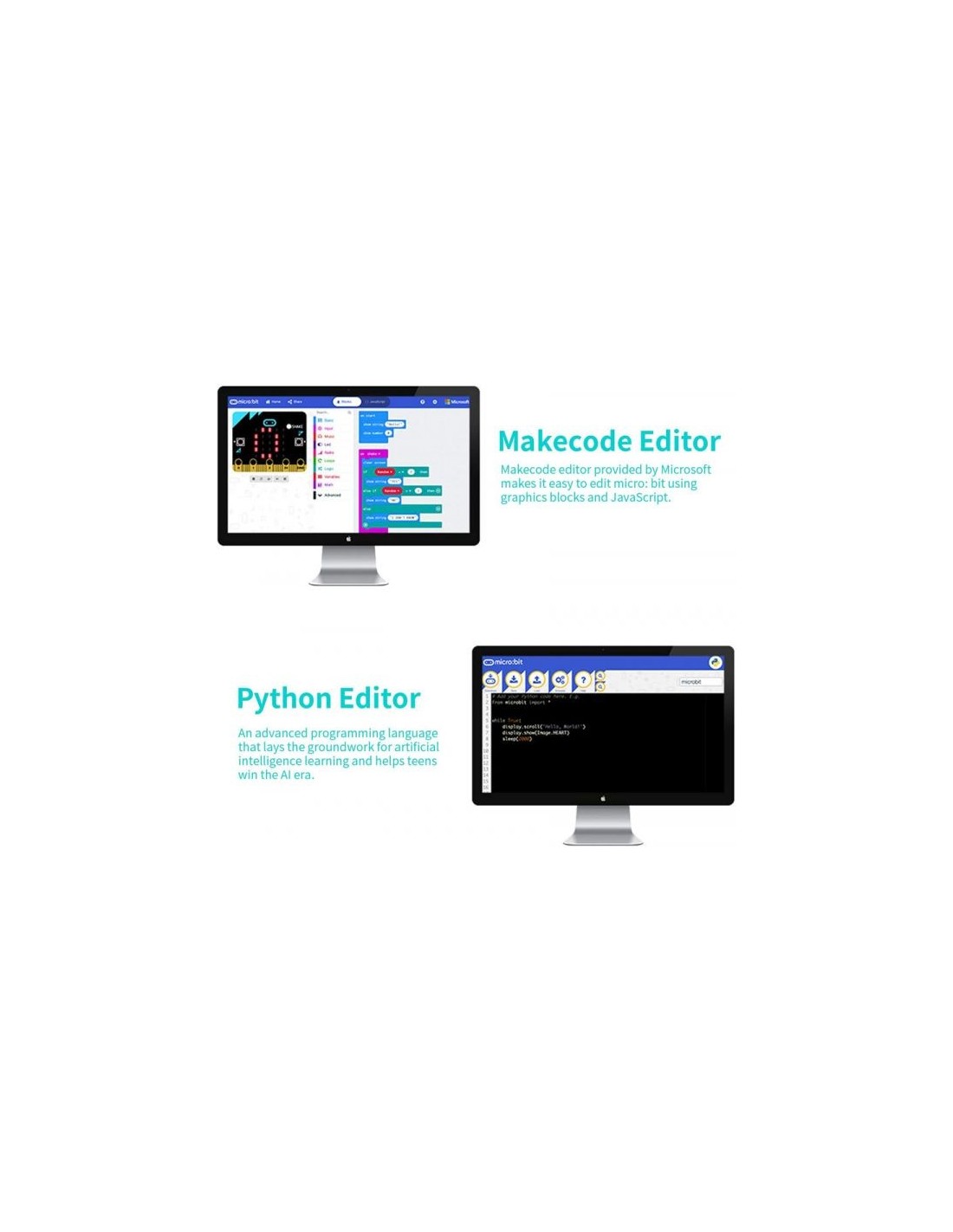 【Multiple Programming Languages】 This micro:bit Starter Kit supports Makecode graphical programming, JavaScript programming, Python and other programming methods.Children can use programming to achieve what they want. It better improves children's interest in programming!