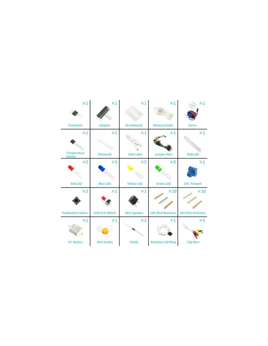 【Abundant components】The Microbit Starter kit has provided 24 kinds of electronic components to help you start, including LED, button, buzzer, temperature sensor, trimpot, servo and motor etc. Micro:bit Starter kit can help your kids enter a wonderful of electronic world.
