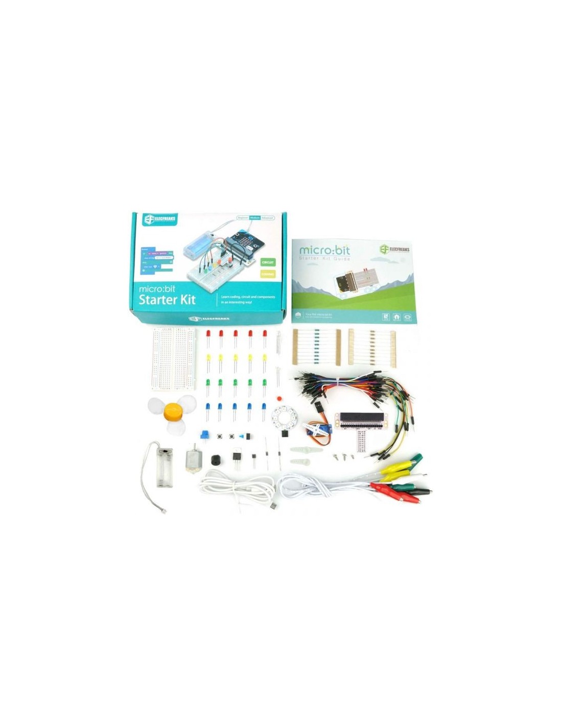 14 días de devolución【About Starter Kit】 ElecFreaks Micro:bit Starter Kit is designed for children who is beginning learning electric circuit and programming knowledge. Students can use this micro:bit basic DIY kits to create or complete more experiment, such as traffic light , use photocell to control mircro:bit screen or LED.