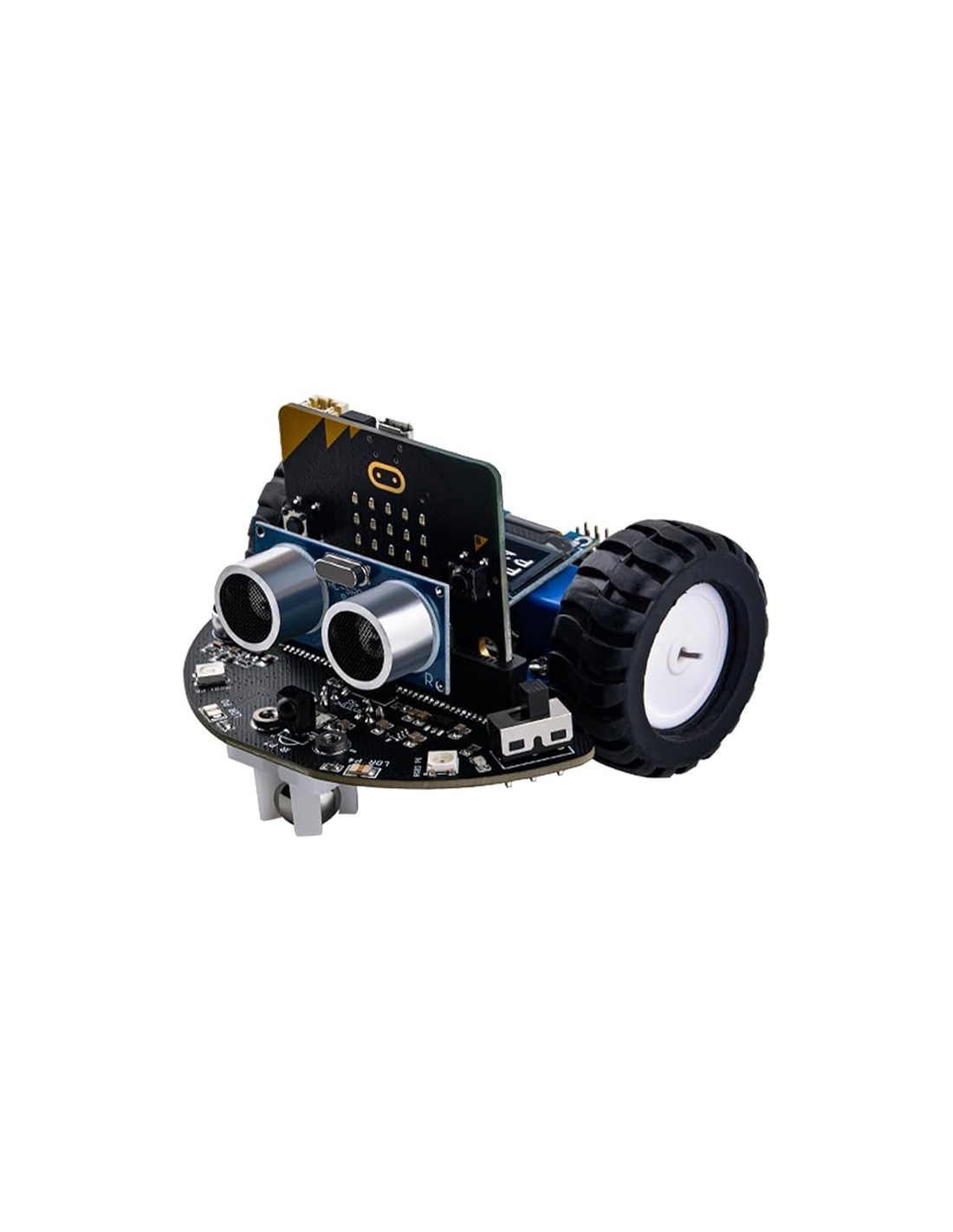 Cuenta con motores integrados, sensor ultrasónico y otros sensores, programables y controlables mediante Makecode, utilizando un lenguaje de programación gráfica. Es especialmente adecuado para estudiantes sin conocimientos previos o con conocimientos básicos de programación.