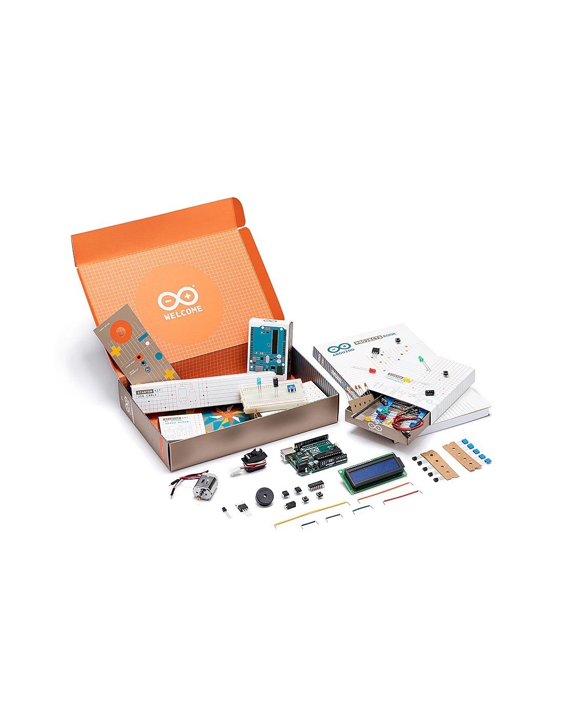 Comience a aprender electrónica de forma rápida y sencilla con el kit de inicio de Arduino, que tiene un atractivo universal para los fanáticos de STEM en el hogar, las empresas en las industrias STEAM y las escuelas por igual. No se requiere experiencia previa, ya que los kits introducen tanto la codificación como la electrónica a través de proyectos divertidos, atractivos y prácticos. Puede usar el kit de inicio para enseñar a los estudiantes sobre corriente, voltaje y lógica digital, así como los fundamentos de la programación. Hay una introducción a los sensores y actuadores y cómo comprender las señales digitales y analógicas.