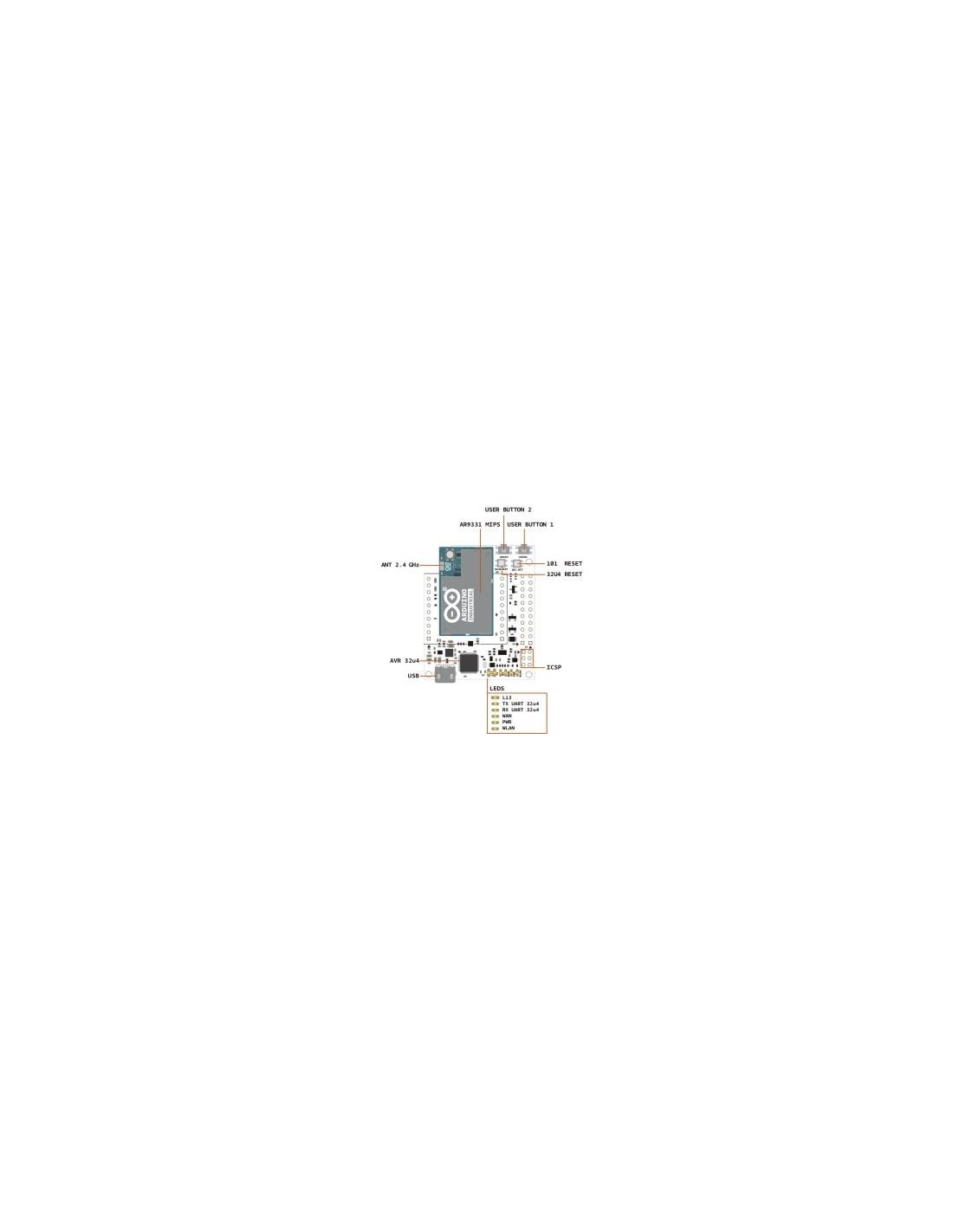 La junta se ha incorporado en Wi-Fi (IEEE 802.11b / g / n operaciones de hasta 150 Mbps 1x1 2.4 GHz), 3 GPIO (2 de las cuales se pueden utilizar como salidas PWM), 4 entradas analógicas, 1 USB, 1 Ethernet señal en el pin encabezados y un built-in convertidor DC / DC.