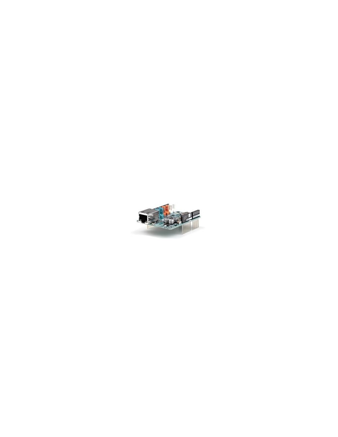 The Arduino Ethernet Shield 2 allows an Arduino Board to connect to the internet. It is based on the Wiznet W5500 Ethernet chip (datasheet). The Wiznet W5500 provides a network (IP) stack capable of both TCP and UDP. It supports up to eight simultaneous socket connections. Use theEthernet library to write sketches that connect to the Internet using the Shield. The Ethernet Shield 2 connects to an Arduino Board using long wire-wrap headers extending through the Shield. This keeps the pin layout intact and allows another Shield to be stacked on top of it.