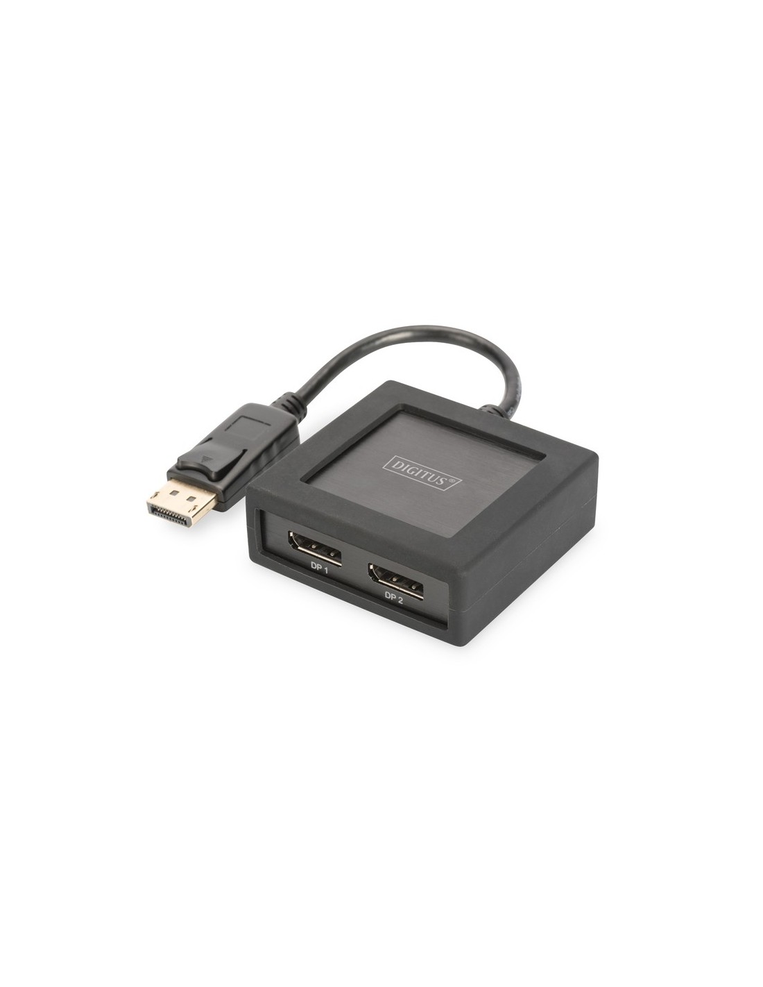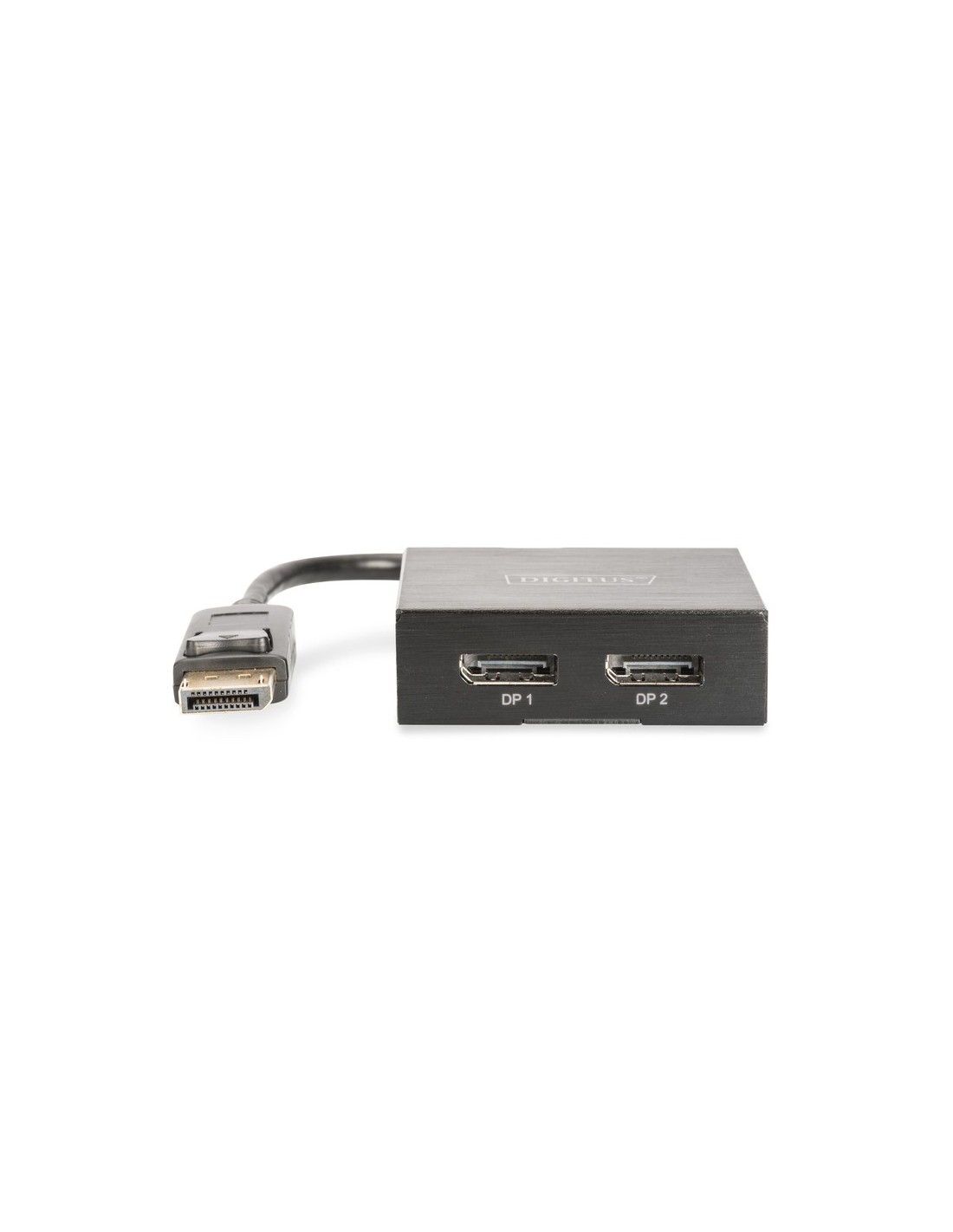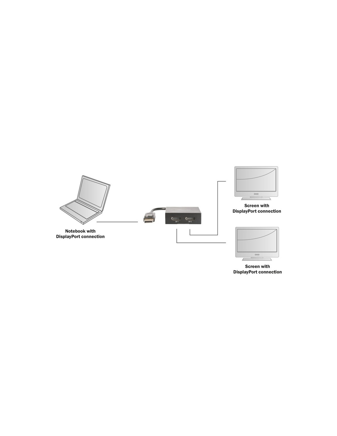 - Distribuye una señal DisplayPort a dos dispositivos de salida DisplayPort, como por ejemplo monitores externos, televisores, proyectores, etc.