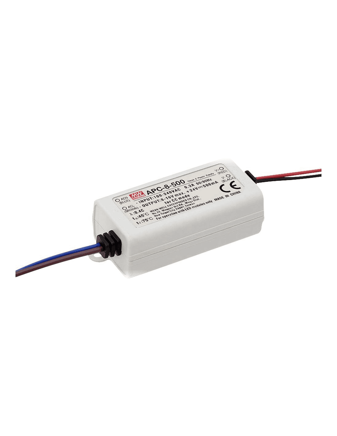Las series APC y APC-E son LED drivers diseñados para trabajar directamente con LEDs (placas de LED o COBs), no con tiras LED. Deben ser equipos que se alimenten en corriente constante. Con carcasa de plástico pensados para aplicaciones de iluminación LED y señalización móvil.