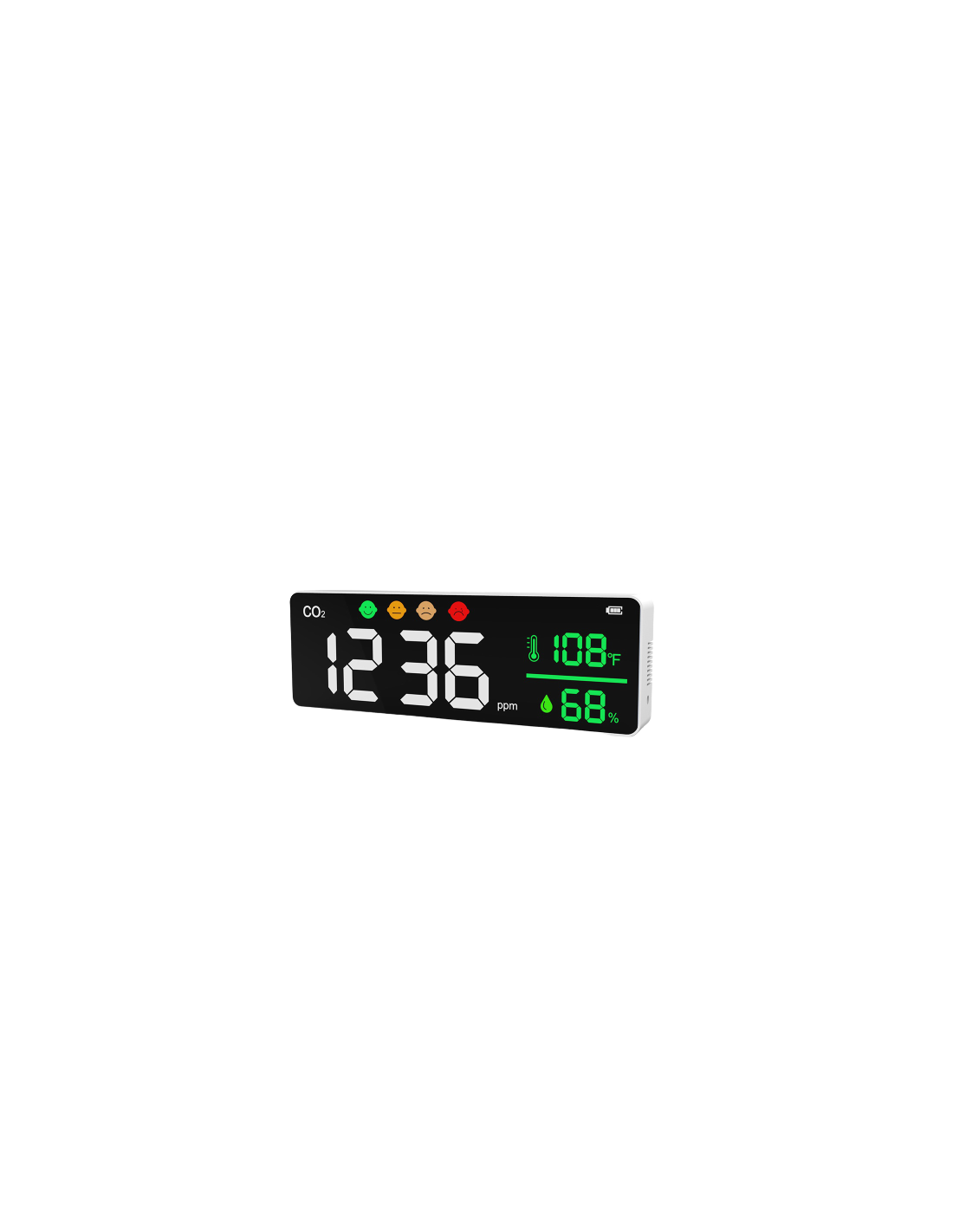 - Margen de medición Dióxido de Carbono (CO2): De 400 ppm a 5000 ppm CO2