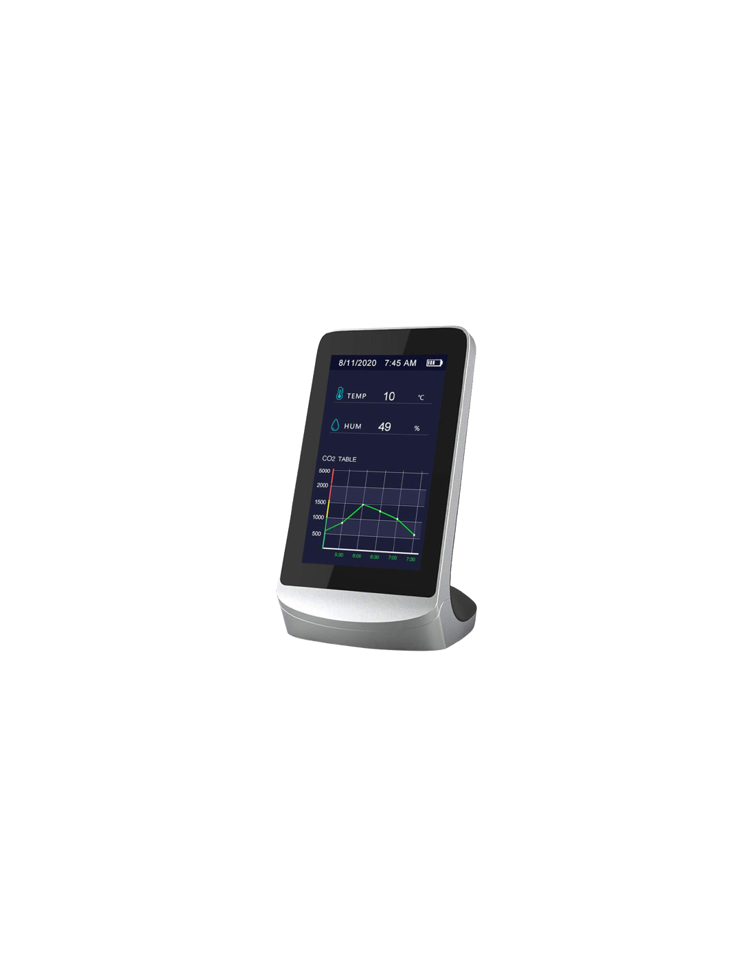 - Margen de medición Dióxido de Carbono (CO2): De 400 ppm a 5000 ppm CO2