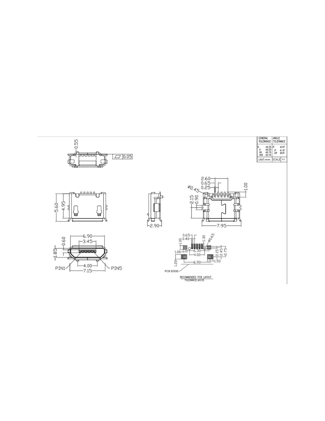 MICRO USB B DE 5P., PARA CIRCUITO IMPRESO