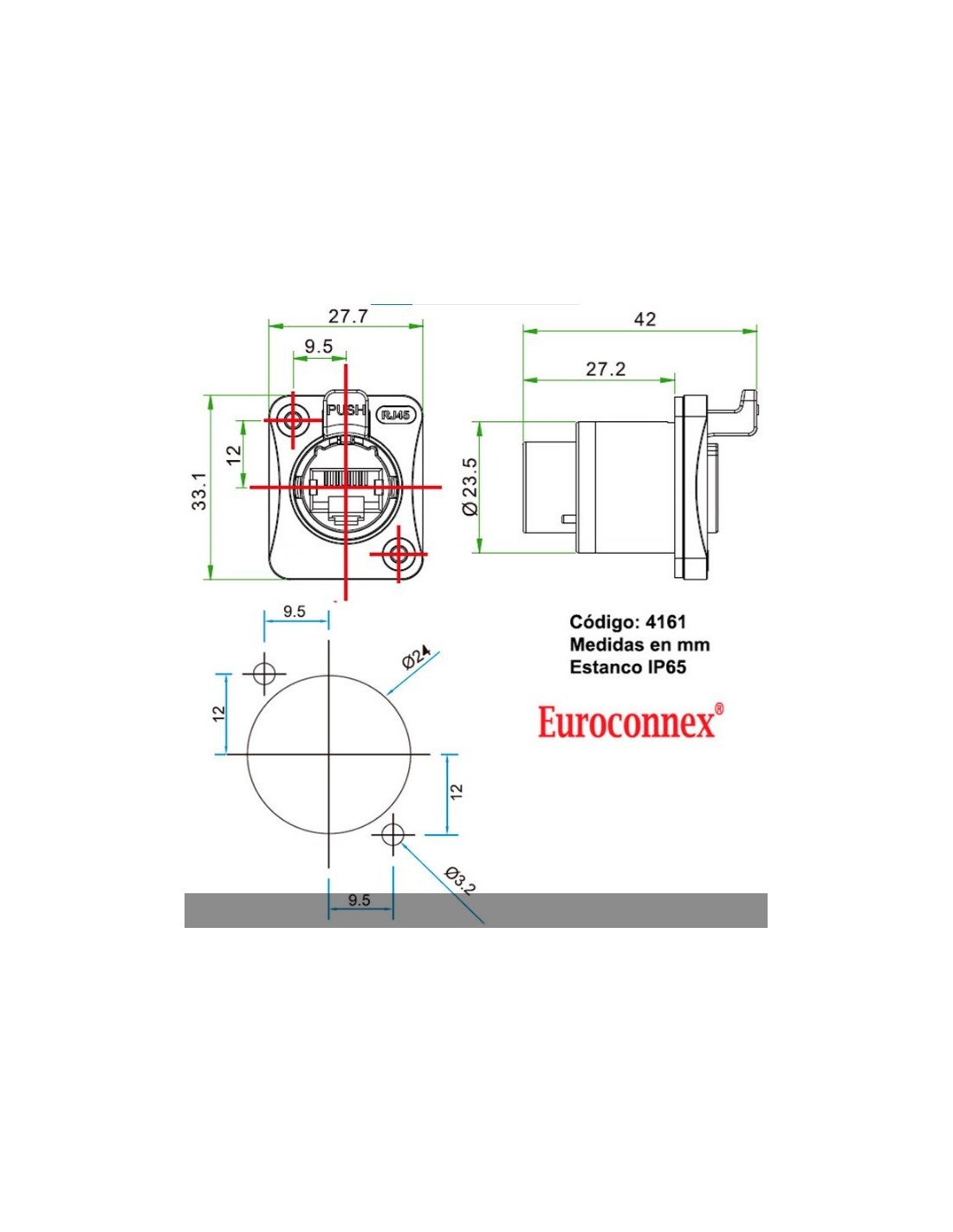 Adaptador RJ45 H/H Estanco Panel IP65 CAT6