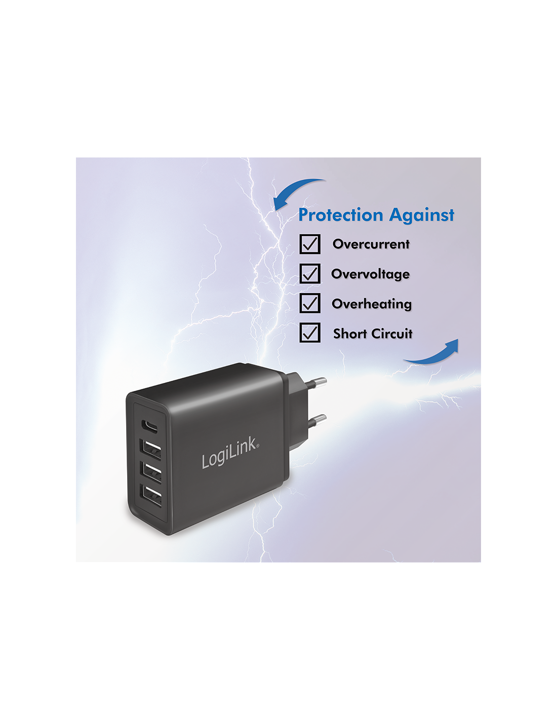 - Capaz de cargar cuatro dispositivos al mismo tiempo (1 puerto USB-C y 3 puertos USB-A para carga rápida)