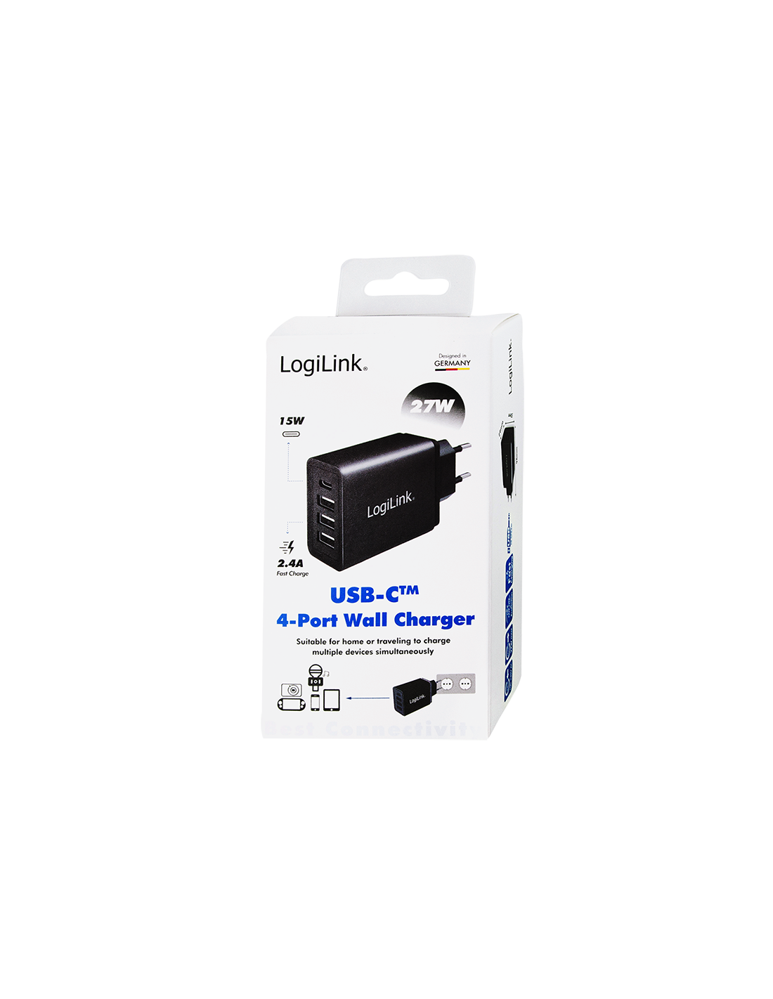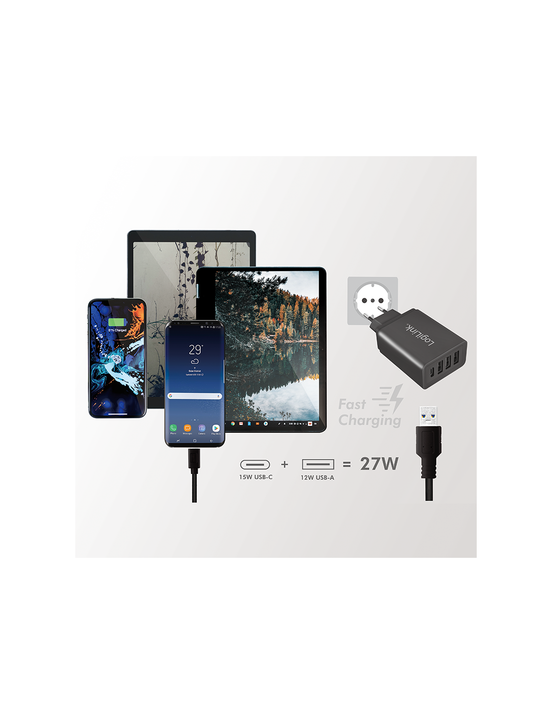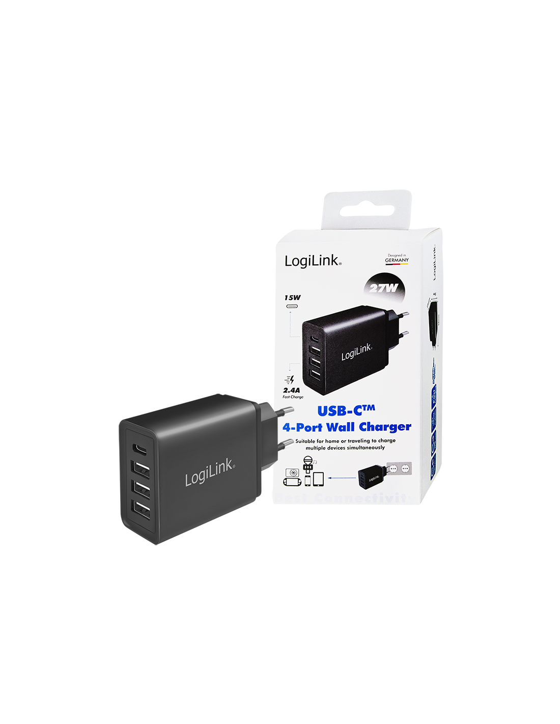 Adaptador de enchufe, 1 puerto USB-C y 3 puertos USB-A, 27 W