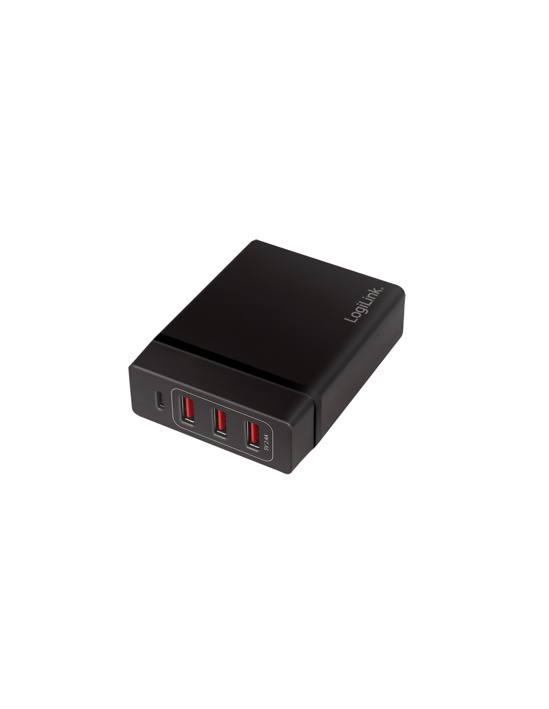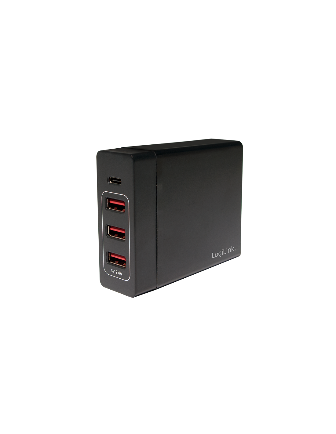 Información del producto "Cargador de mesa USB, 3 puertos USB-A + 1 puerto USB-C (PD), 72 W" de LogiLinkSalidas universales Cargador USB de LogiLink para cargar MacBook®, iPad®, iPhone® y otro dispositivo USB al mismo tiempo. ¡Proporciona una potencia de hasta 72 W en total! Por seguridad, el adaptador tiene una protección contra sobretensiones incorporada.
