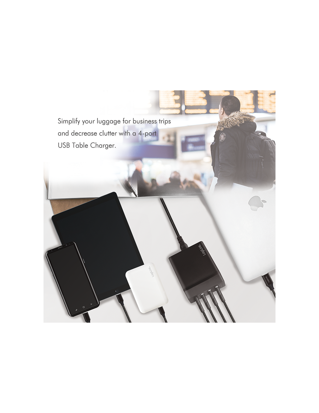 - Carga de MacBook®, iPad®, iPhone® y otro dispositivo USB al mismo tiempo