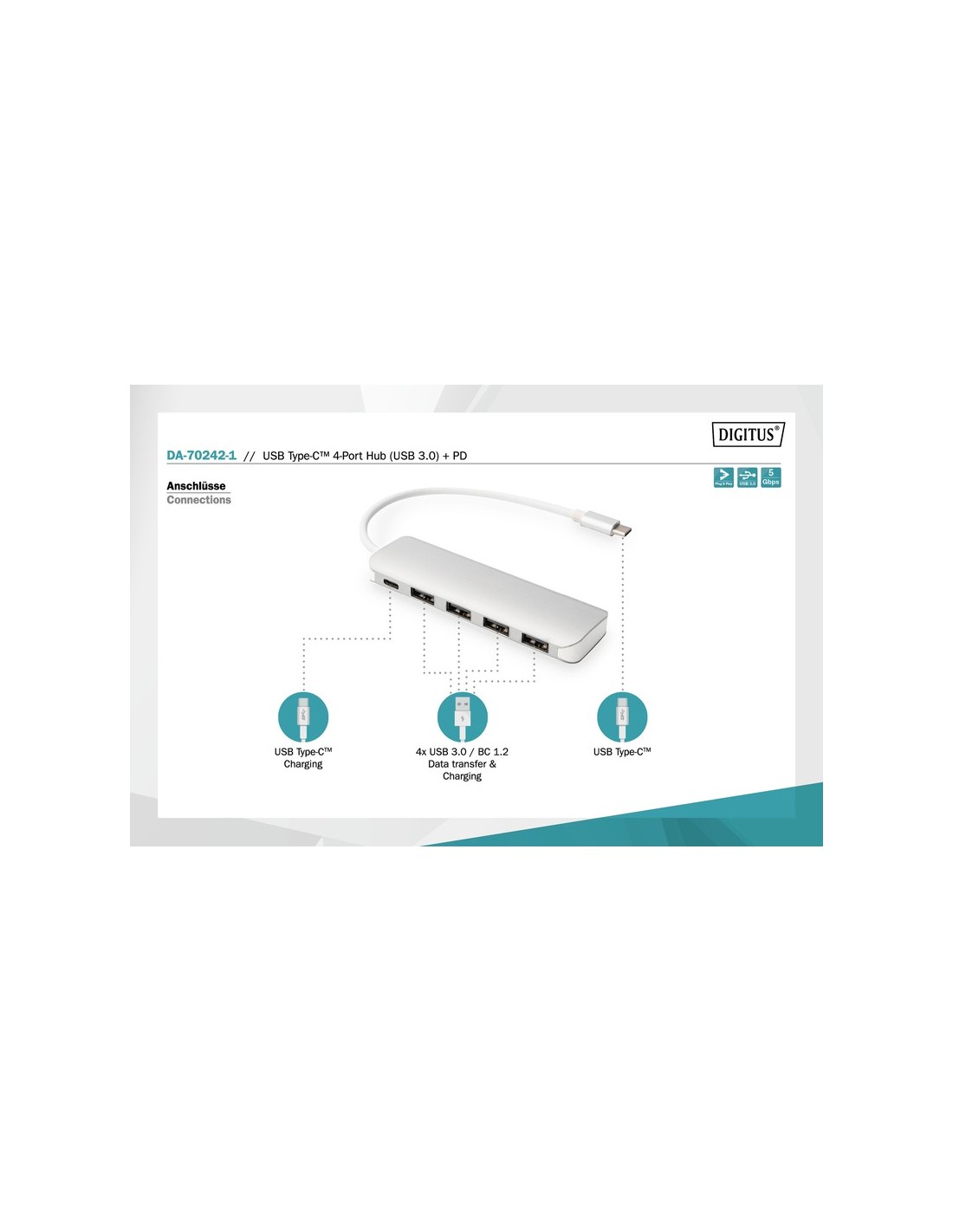 Estación de acoplamiento para smartphone USB-C™, 7 puertos