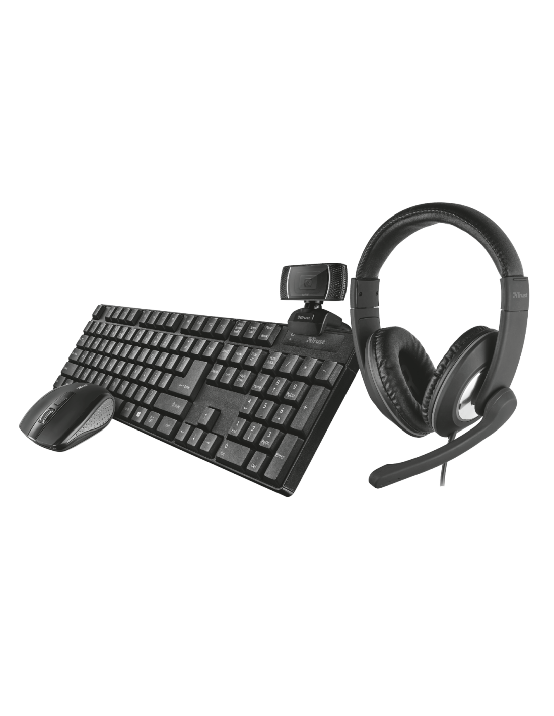 14 días de devoluciónKit 4 en 1 para el despacho en casa incluye un teclado inalámbrico, un ratón compacto inalámbrico, una cámara web HD y auriculares circumaurales