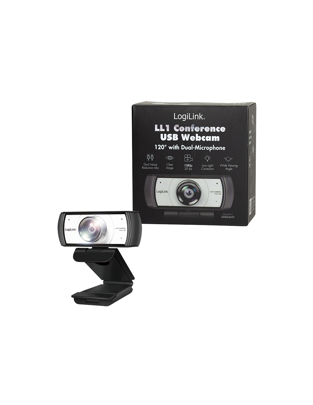 Información del producto "Cámara web USB HD para conferencias, 120°, micrófono dual, enfoque manual" de LogiLink