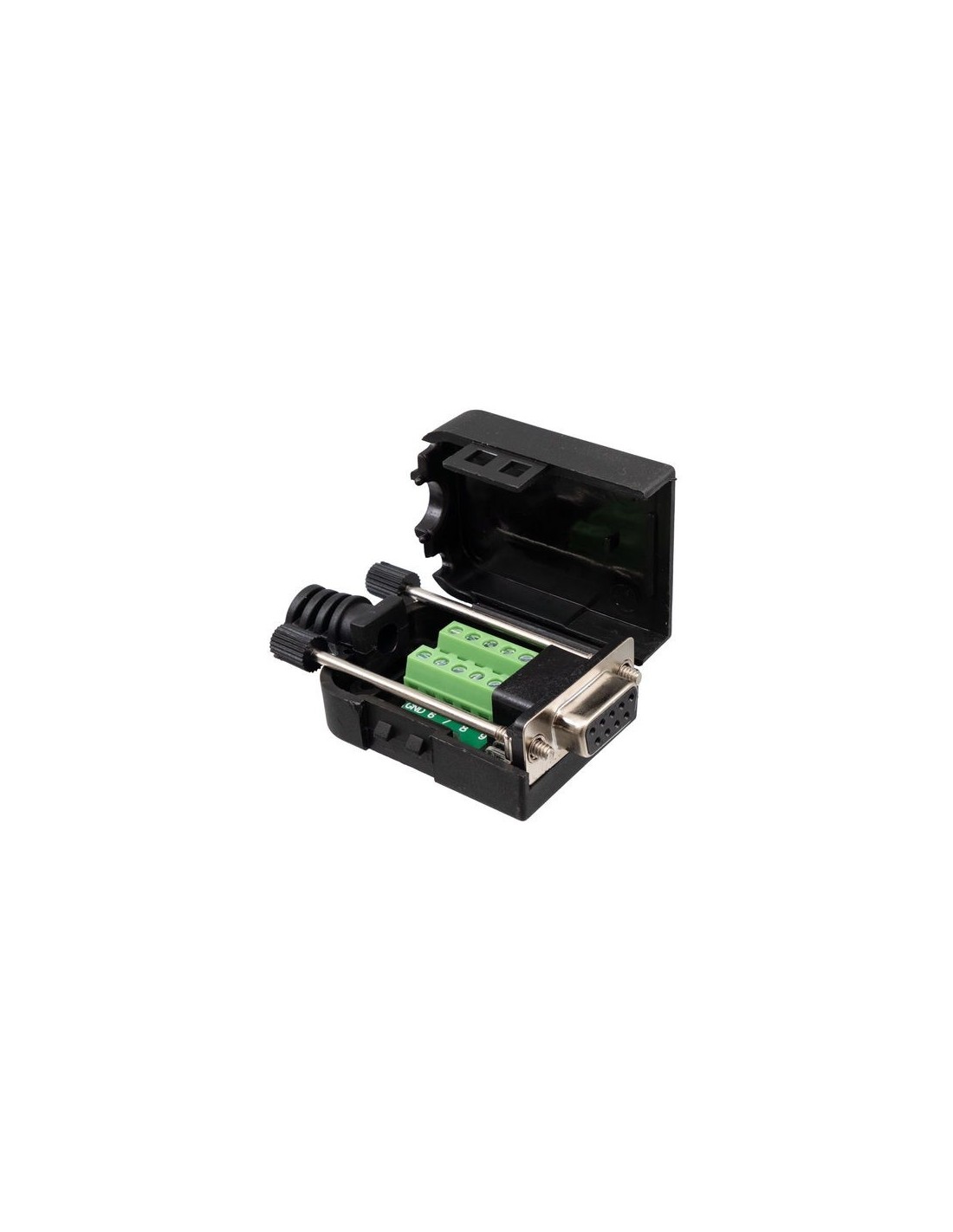 Conector DB9 con terminales, permite hacer la conexión manual de cable y conector. Dispone de 4 tipos diferentes de gomas de sujeción, para cables de diferentes diámetros