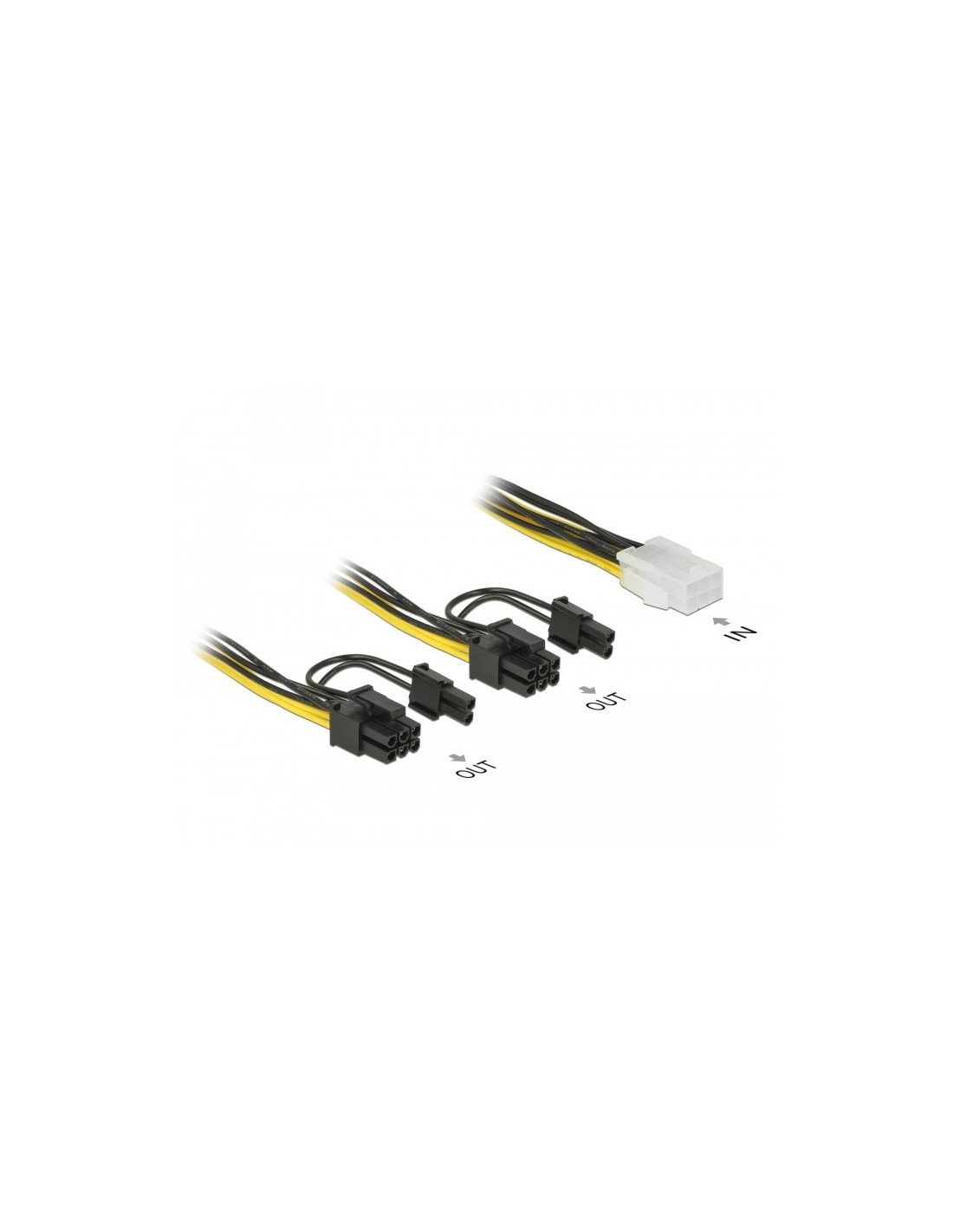 Este cable de alimentación se puede usar para alimentar tarjetas PCI Express, que tienen un alto consumo de energía y tienen dos conectores de alimentación de 8, respectivamente, de 6 pines para conector de alimentación de tarjetas gráficas. Al remover dos conectores, los conectores de 8 pines se pueden cambiar por conectores PCIe de 6 pines.