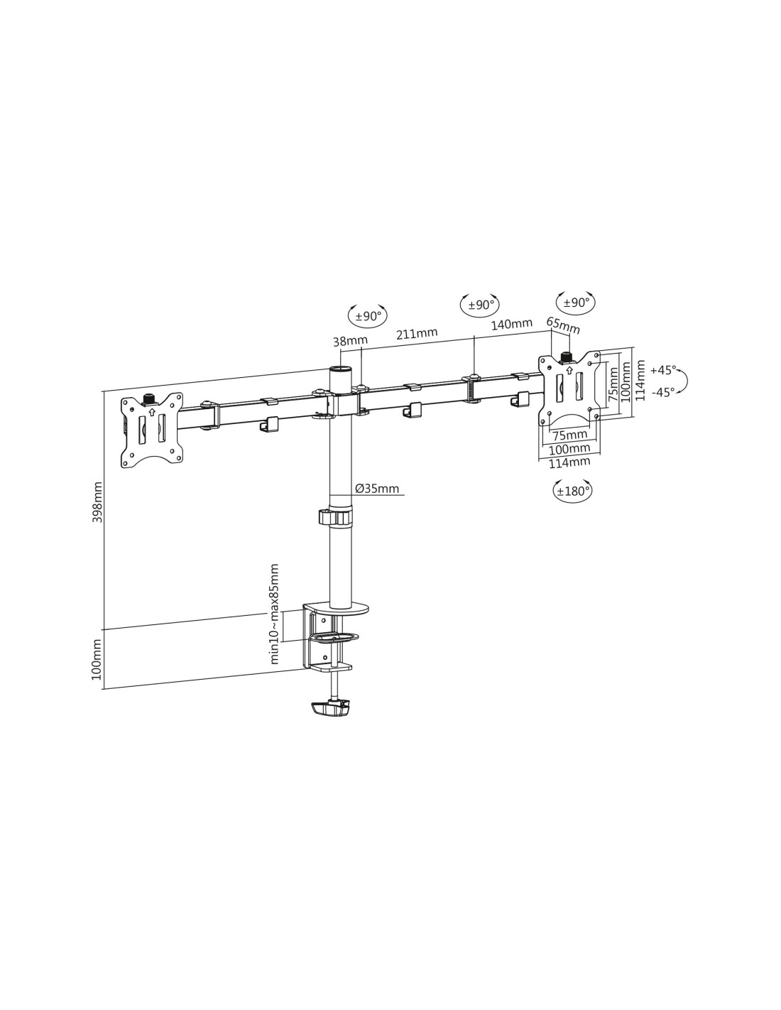 - Apto para dos monitores con un tamaño de 15" a 32"