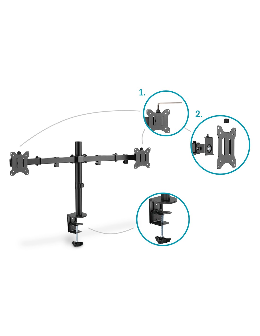 - Soporte de monitor universal doble con fijación a presión