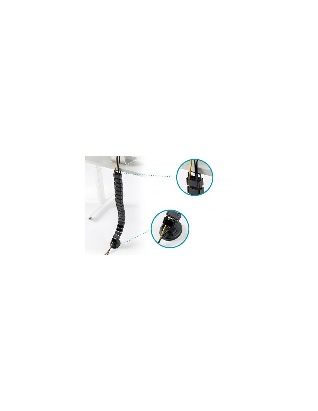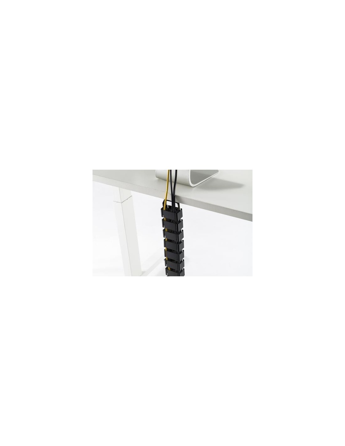 - Con esta guía pasacables, resistente al tiempo que flexible, podrá poner orden en su lugar de trabajo, ya sea en la oficina o en el despacho de casa