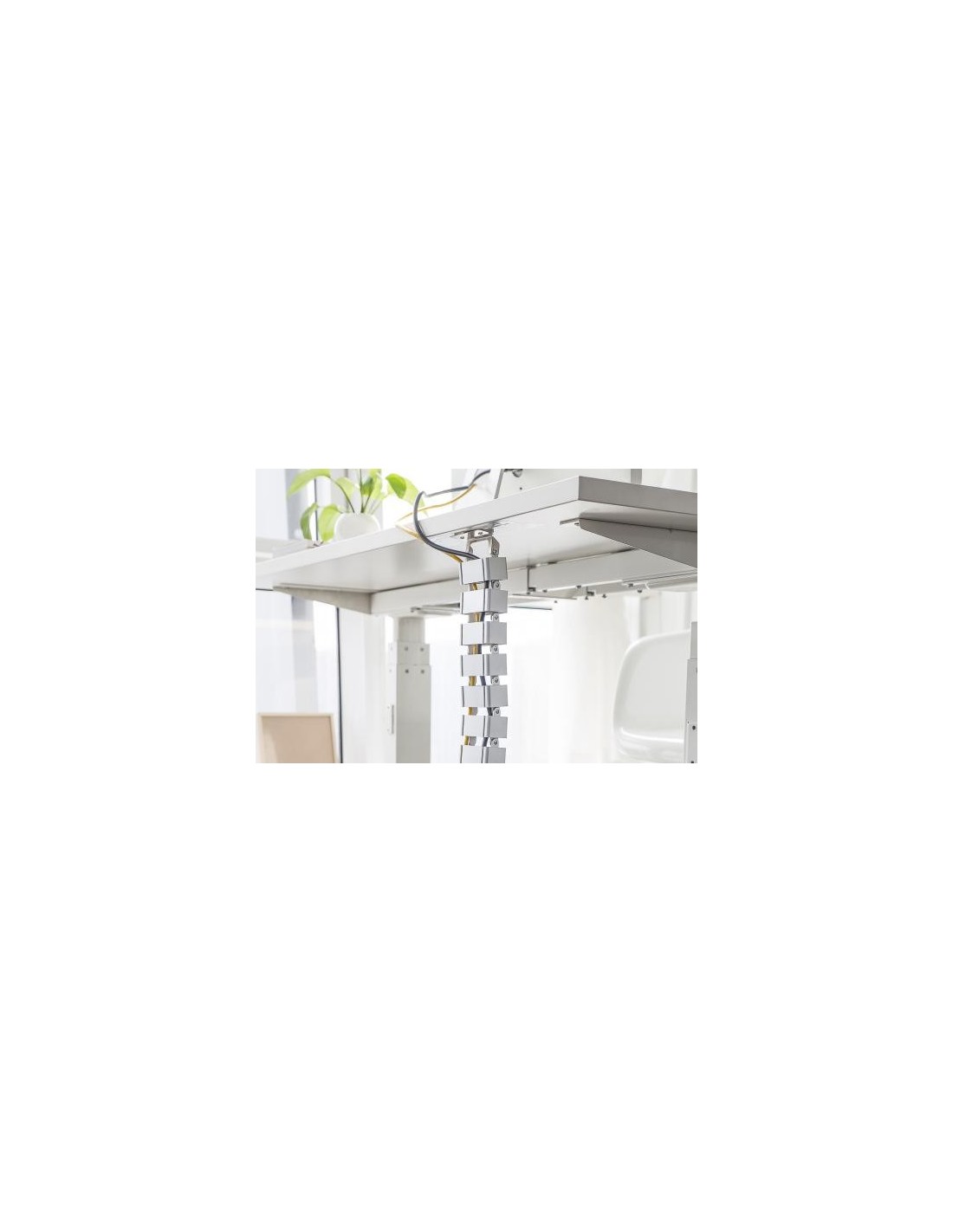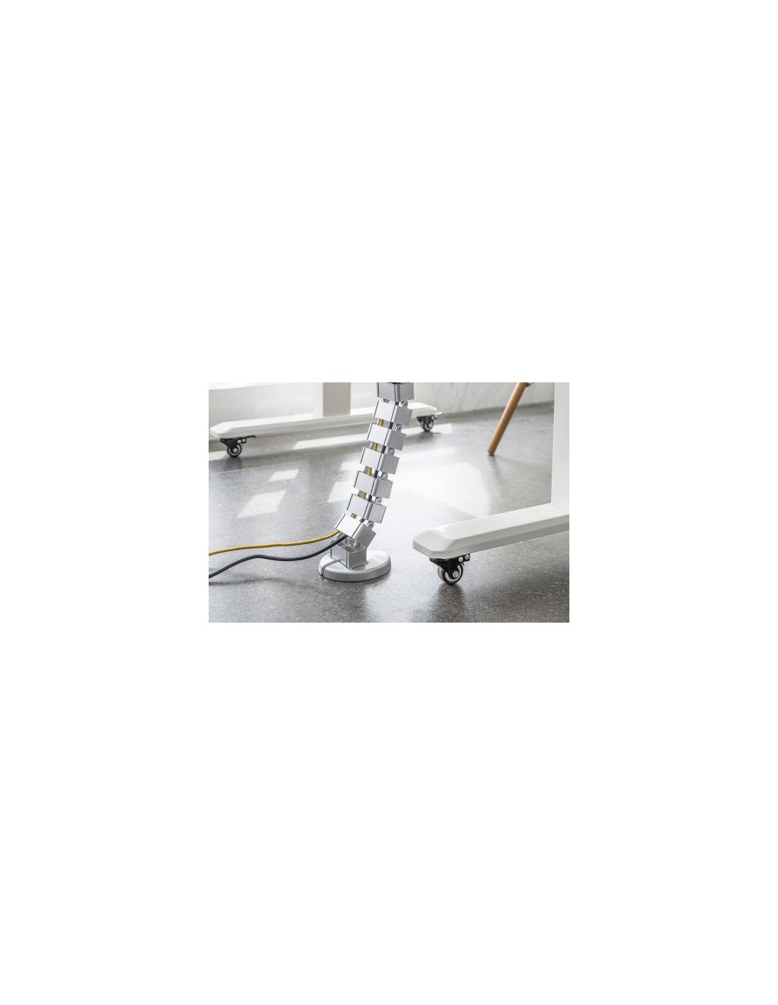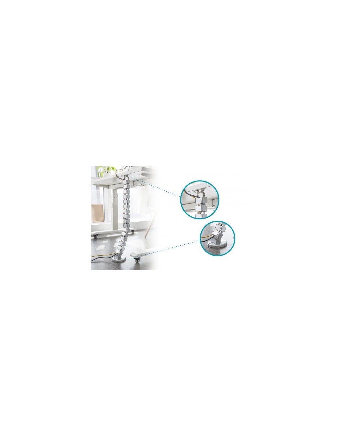 - La columna pasacables es el complemento ideal para ocultar los cables en mesas independientes regulables en altura, que van del suelo al tablero de la mesa