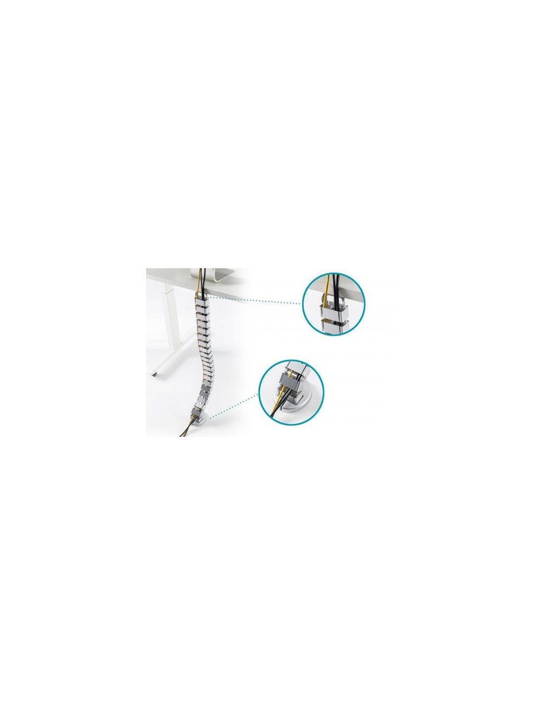 - Con esta guía pasacables, resistente al tiempo que flexible, podrá poner orden en su lugar de trabajo, ya sea en la oficina o en el despacho de casa