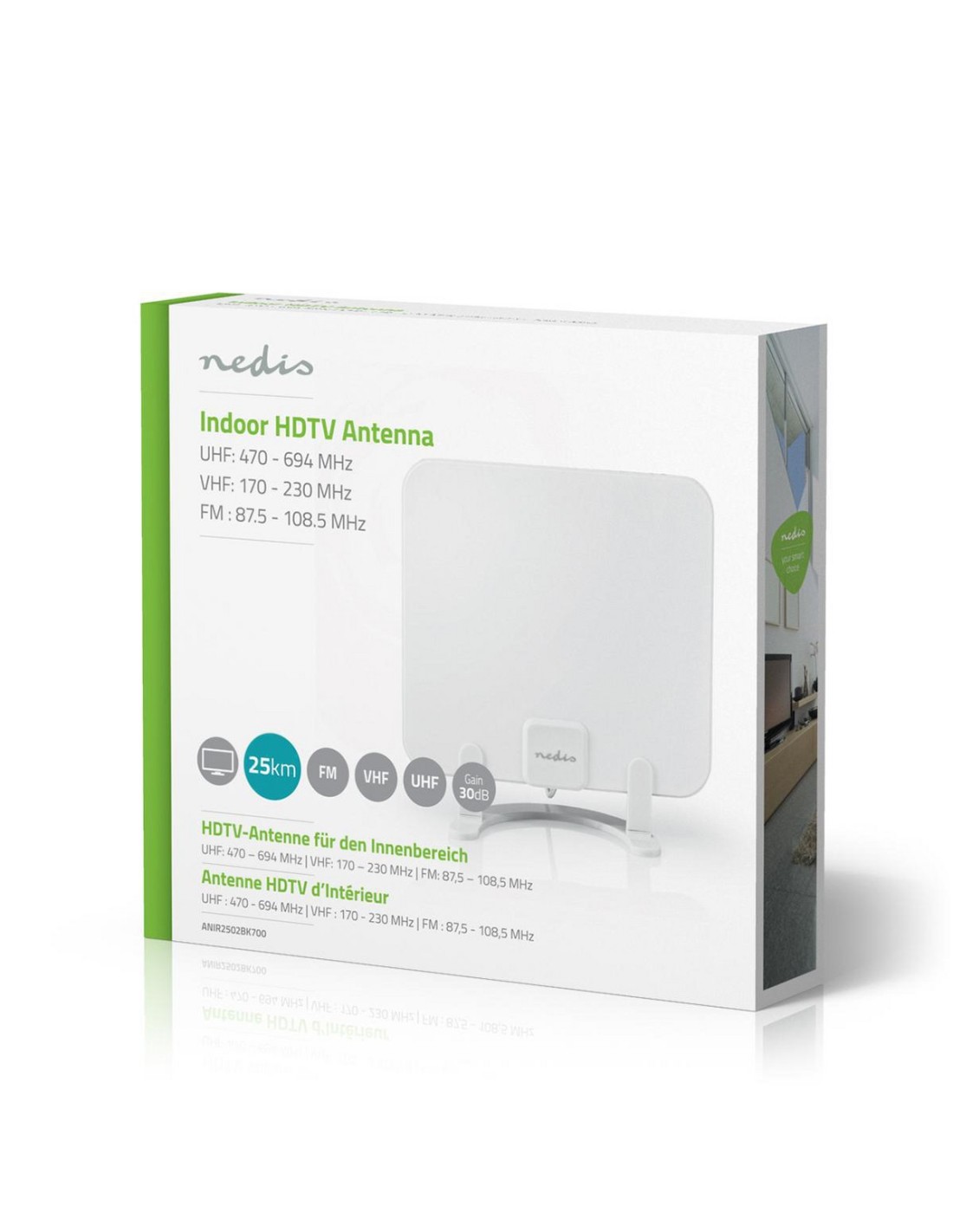 Esta antena para interior Nedis® DVB-T/T2 garantiza una recepción estable de canales analógicos, canales de pago (si está suscrito) y señales de radio FM. La antena cuenta con un diseño compacto y elegante que combina con cualquier interior, sin llamar demasiado la atención.