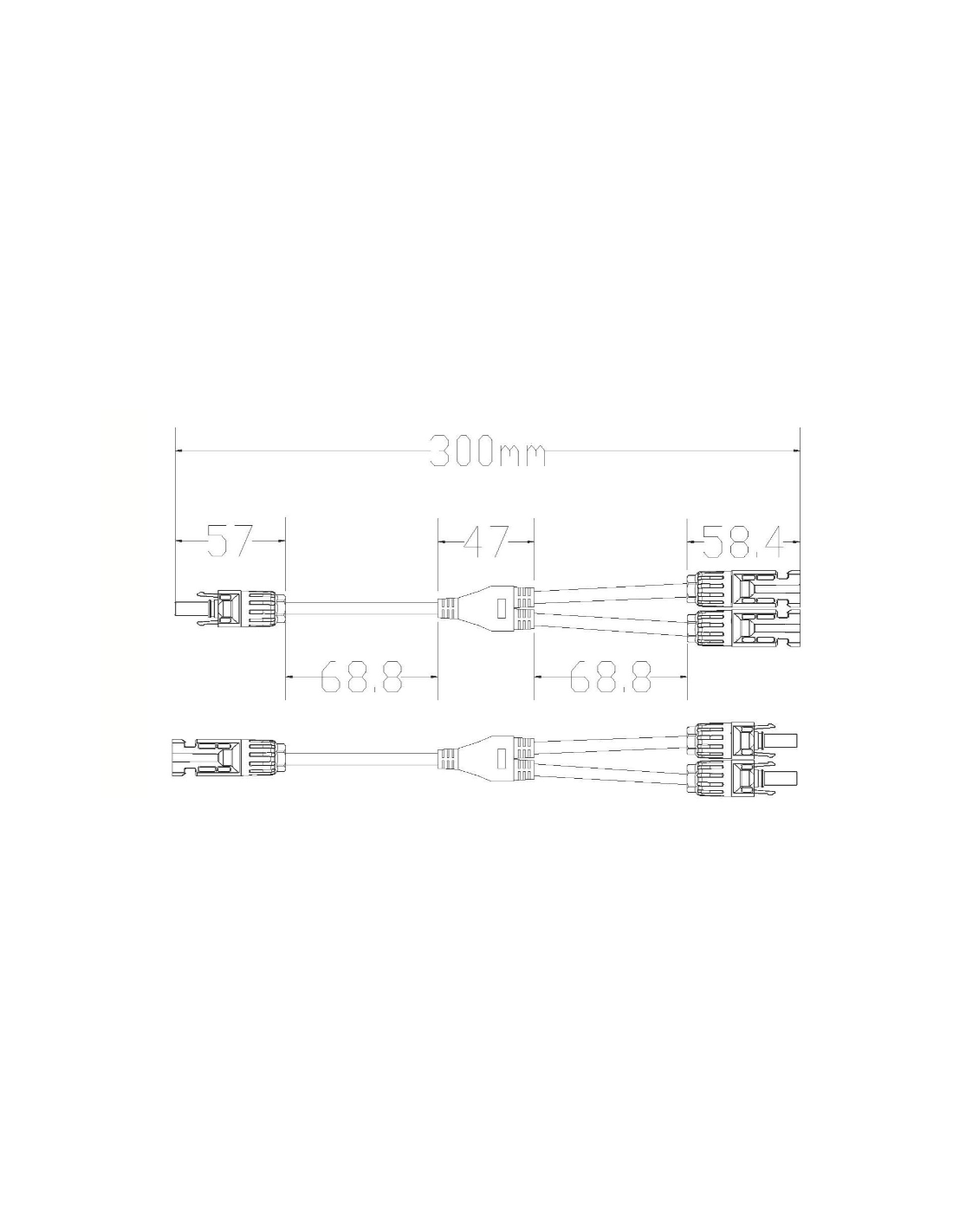 Conector flexible Multicontact 4 - 2 in 1 out. Se utilizan para conectar en paralelo los módulos fotovoltaicos, integrados en la cubierta o en cualquier otro montaje mediante cables de 4 a 6 mm² de sección. El conector cuenta con un sistema de bloqueo, que ofrece seguridad en la instalación y evita una posible desconexión accidental. Instalación fácil y rápida. Cumple con todos los requisitos eléctricos para instalaciones fotovoltaicas Distancia entre cada extremo del conector 30cm Se vende la pareja.