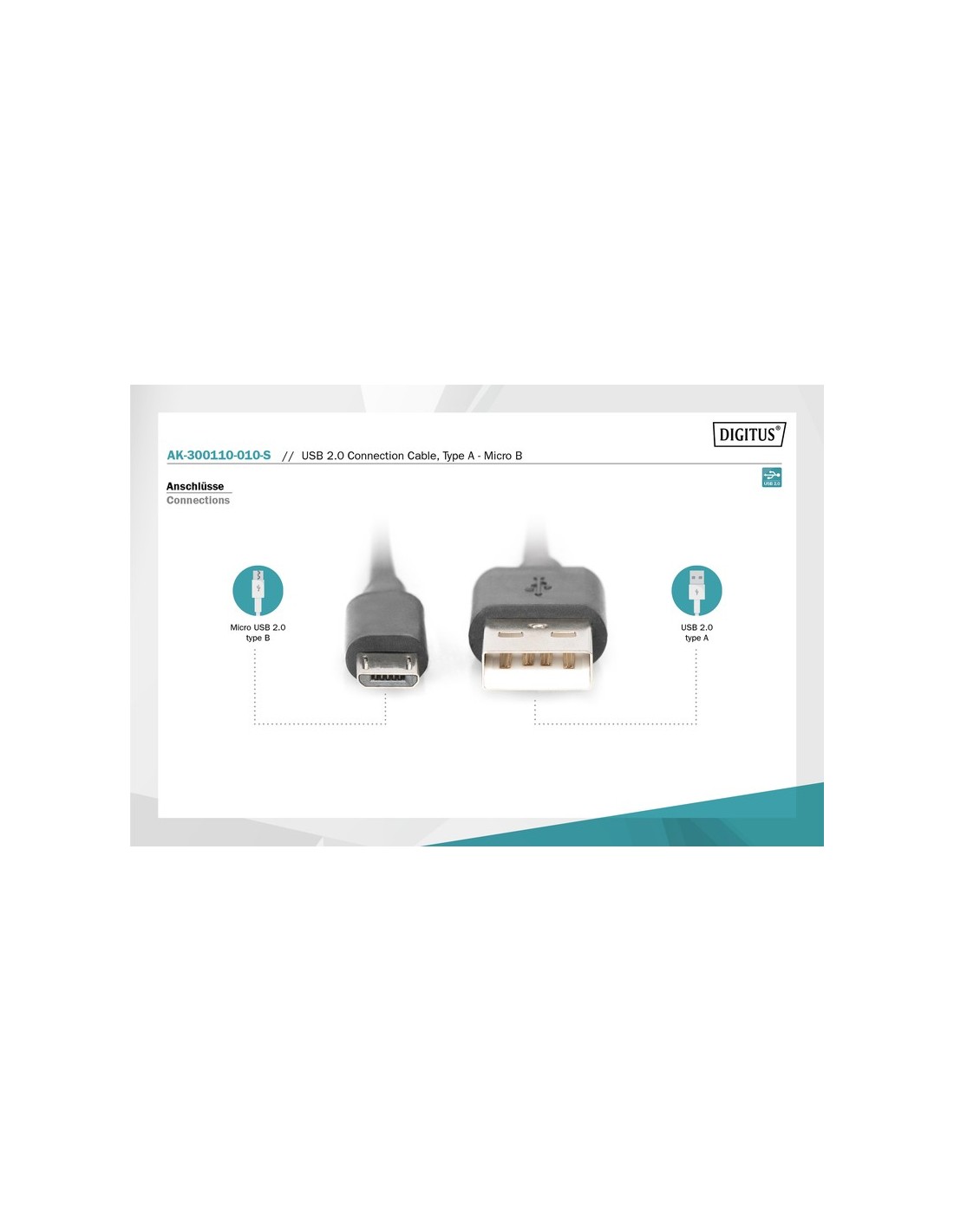 Para conectar dispositivos con terminal USB (con ranura micro USB de tipo B, p. ej. reproductores MP3, Smartphones o discos duros externos) a un puerto USB anfitrión (p. ej. ordenador de mesa, portátil o Hub USB). Tasa de transmisión de datos de hasta 480 Mbps (alta velocidad).
