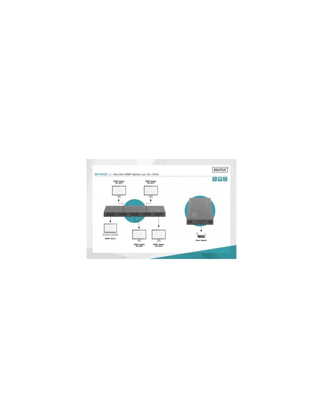 Splitter HDMI® Ultra Slim, 1x4, 4 K / 60 Hz
