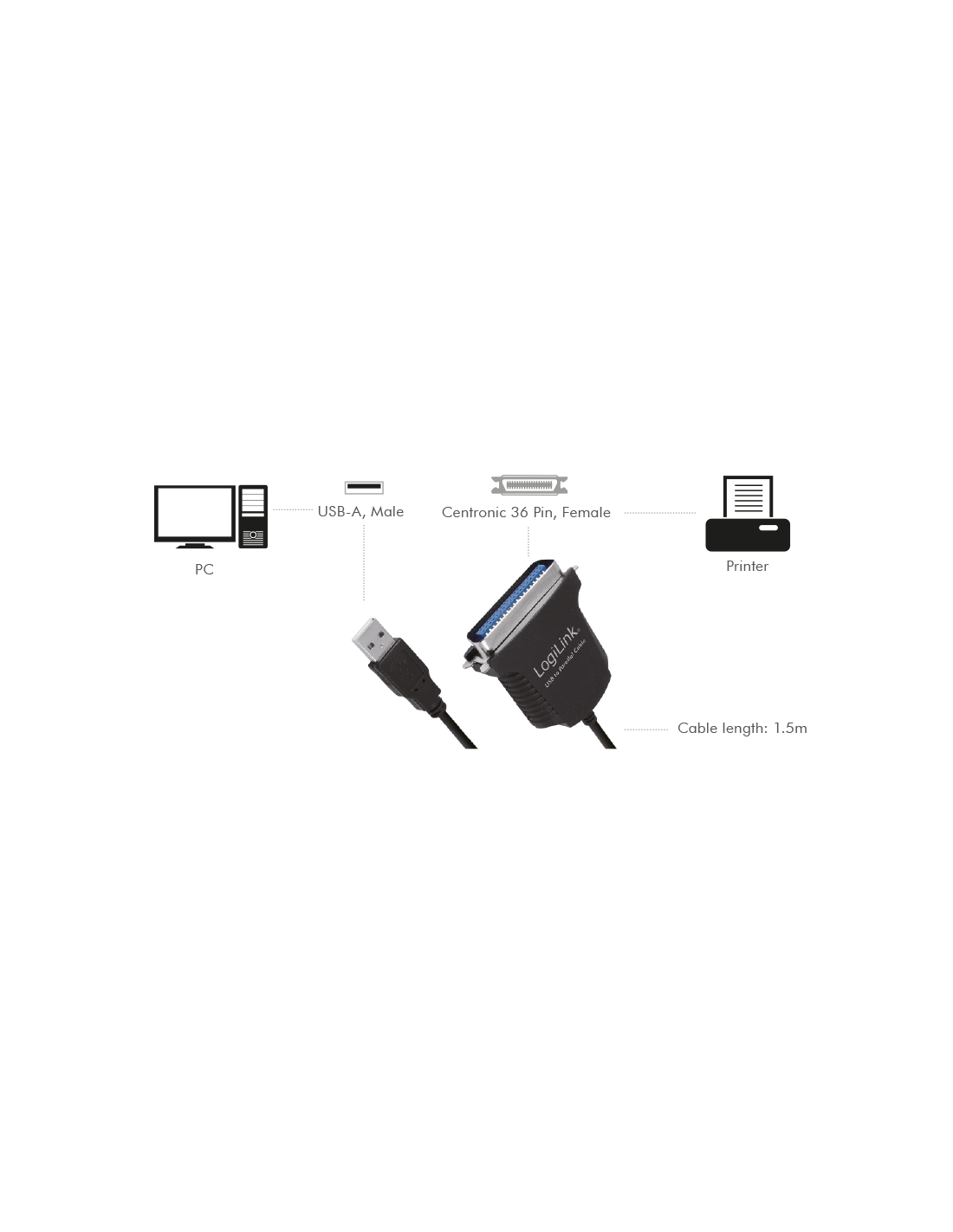 14 días de devoluciónUSB 1.1 cable, USB-A/M to Centronics 36/M, bidirect, black, 1.8 m